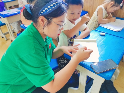 为了提升学生的审美、人文素养,培养审美能力,美术学院“塑心陶情 艺育美好”志愿服务团队在院团委副书记张鹏飞的带领下,于7月18日前往七彩光幼儿园开展公益美育授课活动。