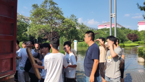 大灾面前有大爱。梁作振、张东亮和敦洁身体力行,率先做出表率。他们亲自在物资领取点给学生发放物资;及到宿舍安抚学生情绪,并提醒学生注意安全;做好安排部署,组织运输车到教学楼、餐厅、宿舍等地方救助被困学生。团队队员也积极参与,帮助分发物资,坚持把物资送到积水严重的女生寝室楼下,为其提供便利,同时帮助老师把学院楼的珍贵资料和电脑等贵重物品搬运到二楼。此外,男生寝室一楼被淹,由于有配电柜,必须把雨水阻挡在配电柜外,男生在暴雨中传递着一袋袋沙土,大家互相加油打气,齐心协力,共同守住了配电柜。