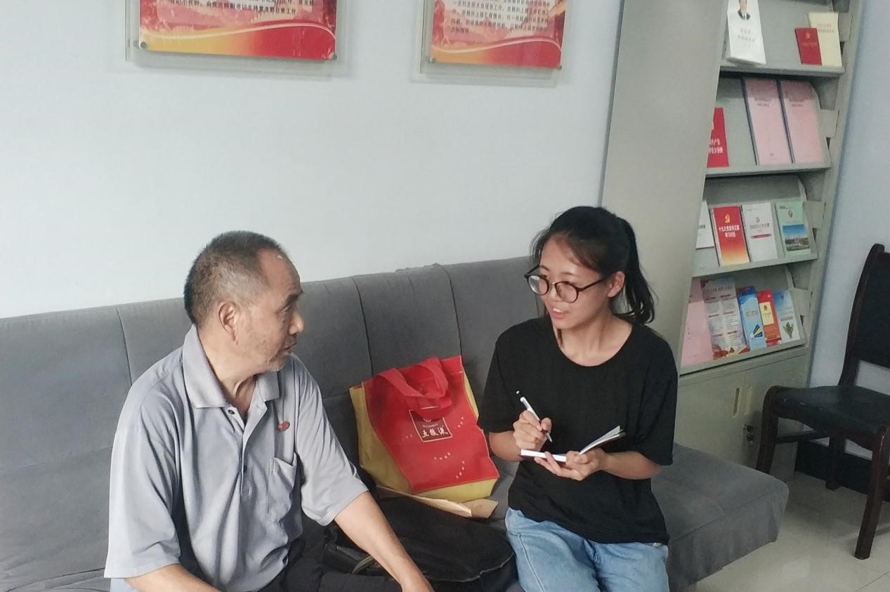 7月19日下午,社会事业学院“花开仲夏·‘剧’暖童心”关爱留守儿童志愿服务团在郝光屯小学会议室对退休老校长张全明进行专访。专访以“践行四有标准,弘扬优良师风”为主题,志愿服务团队部分成员共同参与了此次访谈。