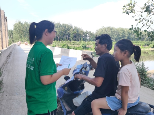 七月骄阳似火,队员们不惧炎热斗志昂扬,行走在黄河滩上,一件件翠绿的衣服汇聚成小村落里靓丽的风景线。“团队结合当地实际情况,重点走访从事观赏鱼养殖、经济鱼类养殖、新品种鱼养殖等多户渔民,深入了解当地渔业的发展现况。