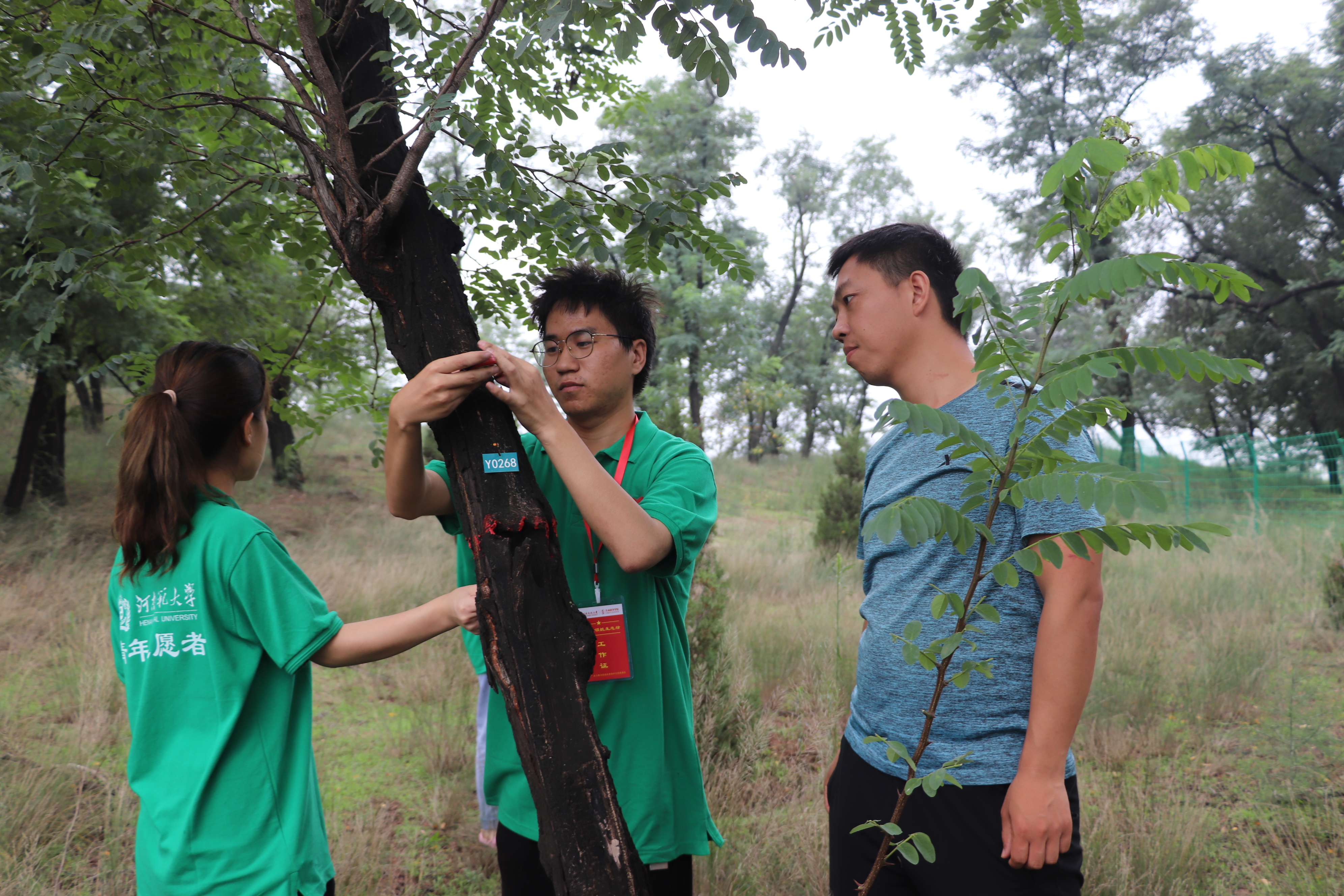 经团队成员了解,该生态站的研究方向为持续稳定开展河南黄河故道沙地生态系统的自然演替、沙化土地综合治理及检测、等研究, 实践队员跟随生态站的指导老师张岗岗、王洋前往固定样地进行乔木的测量,成员们遵从测量方法,分工协作,测量了20棵刺槐胸径、树高、枝下高、冠幅等基本数据,将理论知识充分运用到实践中去,充分了解了当地生态站中刺槐树种的基本生长情况。