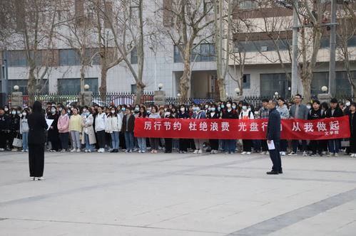 3月7日,文学院在国旗广场隆重举行了升国旗仪式暨“光盘行动新‘食’尚”主题团日活动,500余名师生参加了升旗仪式。仪式由文学院党委副书记张颜勇主持。