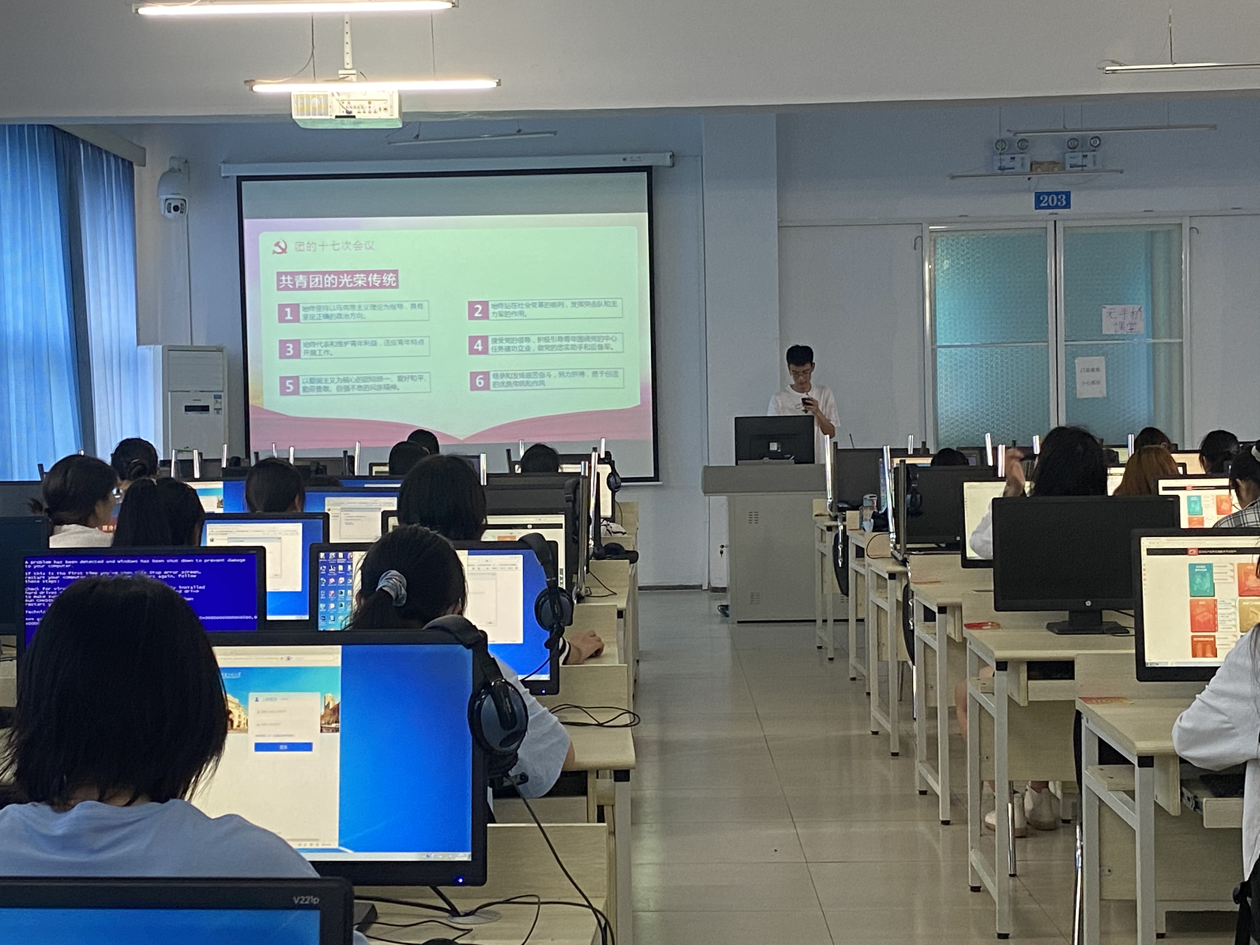 首先,团支书戚馨升介绍了中国共产主义青年团的重要地位和作用。他指出:中国共产主义青年团是中国共产党缔造并领导的一个具有光荣历史和革命传统的先进青年的群众组织,在建设社会主义现代化强国的进程中发挥了生力军和突击队作用,为党培养、输送了大批新生力量和工作骨干。戚馨升强调,历史长河不息,时代考卷常新。我们应当从团史中汲取理论自信、智慧力量,主动肩负起继往开来的伟大使命。各位青年团员认真聆听、抖擞精神,深刻认识到时代赋予当代中国青年的重大责任。紧接着,团支书向全体团员重温了共青团诞生、发展、辉煌的三个阶段,又带领聚焦团史发展的两个主要事件——“五四”运动和“一二·九”运动的故事。随后,团支书向同学们分享了团的十七次会议及历次会议的意义,展现了共青团始终坚持以马克思主义理论为指导,始终代表和维护青年利益等的光荣传统。团支书的解读内涵深刻、立意深远,具有很强的政治性和指导性,为青年团员在新时期践行初心、勇毅前行指明了方向。最后,戚馨升着重提出对共青团和广大青年团员的新要求:共青团工作攸关党和国家前途命运,每一位团员青年要坚定正确的政治方向,守初心、担使命,把报国之志转化为实际行动,成为中国共产党的优秀后备军。