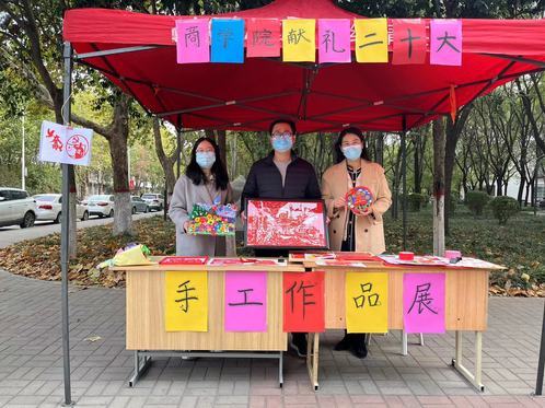 为庆祝党的二十大胜利召开,深入学习贯彻党的二十大精神,丰富学生校园生活,11月4日上午,商学院于学校东区餐厅门口举办“献礼二十大”手工作品展。学院学生认真准备,积极参与,表达了对党的崇敬与热爱。
