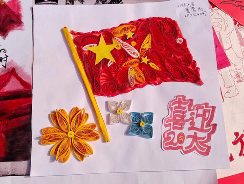 学院前期积极宣传,精心策划。学生踊跃报名参加,充分发挥想象力和创造力,创作出了剪纸、橡皮泥画、折纸、手抄报等形式多样的手工作品。学院从中选择优秀作品进行展示,其中,精致优美的剪纸作品展现了中华民族取得的巨大成就,栩栩如生的手抄报描绘了抗疫战士勇敢逆行的身影,独具匠心的彩泥作品展示了祖国的大好河山。五彩缤纷、造型精美的手工作品一经展出,立刻吸引了同学们的目光。摊位值班人员认真地解释着作品含义,观看作品展的师生仔细欣赏、赞不绝口。2022级经济学韩亦菲感叹到:“展出的作品内容丰富、构思巧妙,以手工作品的方式对党的二十大精神及党史进行生动诠释,使我受益匪浅。”