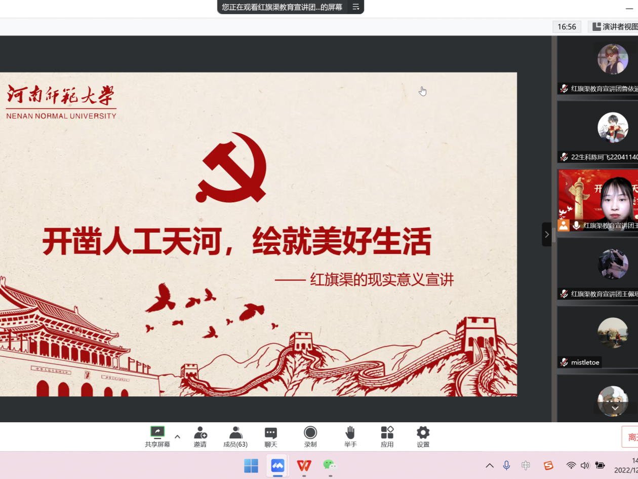 开凿人工天河,绘就美好生活——生命科学学院红旗渠精神实践宣讲团开展线上宣讲活动