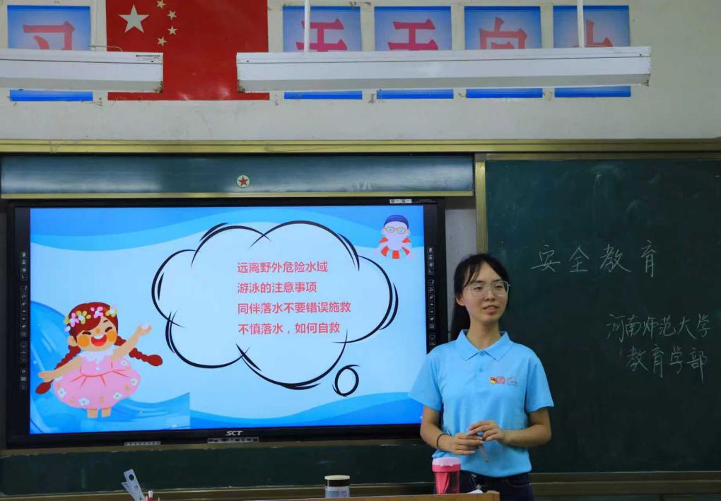 为防范村小与村幼暑期溺水及饮食不当事故的发生,7月6日下午,“木铎千里”支教志愿服务团12名驻村队员乘大巴顺利抵达原阳县西王屋村支教团开展暑期安全教育宣讲活动。本次活动由教育学部团委书记兼西王屋村驻村书记魏尔康及团队指导老师尹晓炯带队,实践队员们共同参与。