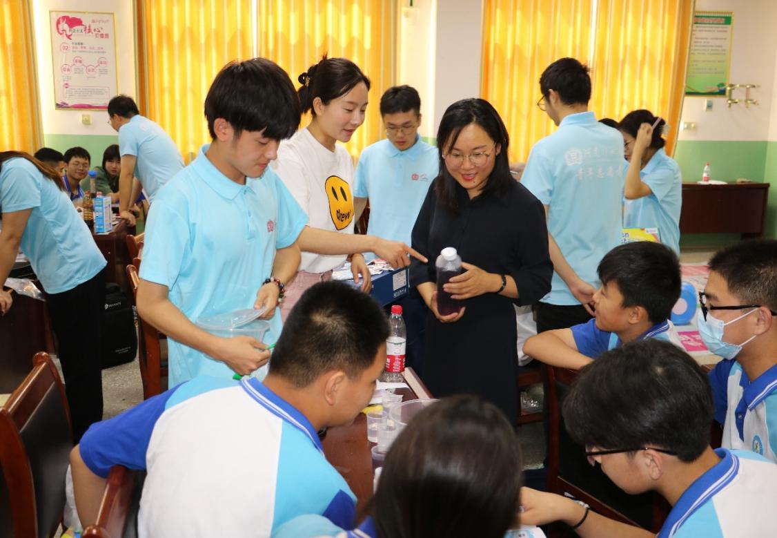 为响应国家绿色发展的号召,加强生态文明宣传教育工作,提升广大青少年的环境保护意识,引导青少年积极参与到环保事业中来。7月5日上午,在环境学院辅导员任洁、青年教师张静霄的带领下,环境学院“启梦计划”环保科普志愿服务队走进卫辉市柳庄乡第一中学,通过科普宣讲、趣味科学小实验、环保小游戏等形式,向同学们宣传生态环保知识,帮助他们了解环境保护的紧迫性及重要性。卫辉市团市委书记郑鑫、卫辉市柳庄乡组织委员白稚子、团委书记潘峰、柳庄乡第一中学校长王玉华、副校长孙长河出席本次活动。