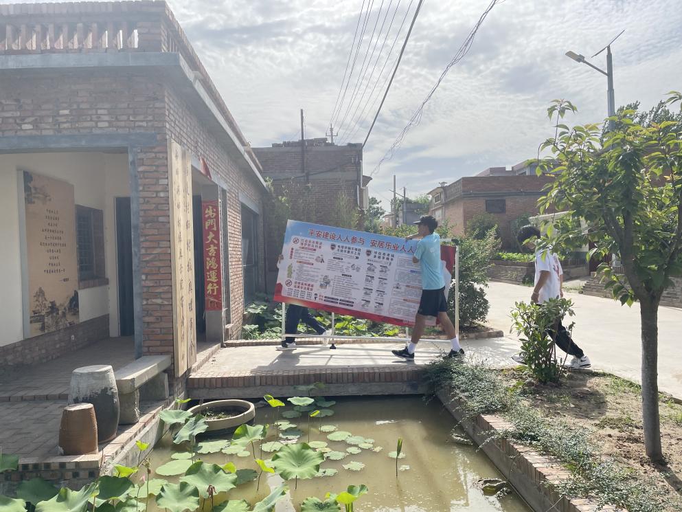到达杨堤村后,新乡县刘双主任向团队指导老师毛悦梅及社会实践志愿者们介绍了新乡县七里营镇杨堤村整体规划。在乡村建设过程中,杨堤村秉承不改农村风貌、简朴自然的原则,对村庄进行修复与保护,做到“不砍一棵树,不扒一间房,不填一口塘”,使整个村庄保持最初的自然形态。接着,实践志愿者们参观了鲍国志乡建工作室,深入了解了乡建过程的艰辛与不易,杨堤村的建设理念是把规划还给乡村,把设计还给农民,外修生态,内修人文。通过解决“老屋荒芜,何处安置乡愁”“新房已非安心所”等问题,村干部带领群众把杨堤村打造成为乡村振兴示范片区,绘就了美丽乡村新画卷。最后,队员们认真开展防诈骗宣传画报制作、街道清扫、孤寡老人慰问等一系列实践活动,积极投身到乡村建设中去,打造幸福杨堤的美好未来。