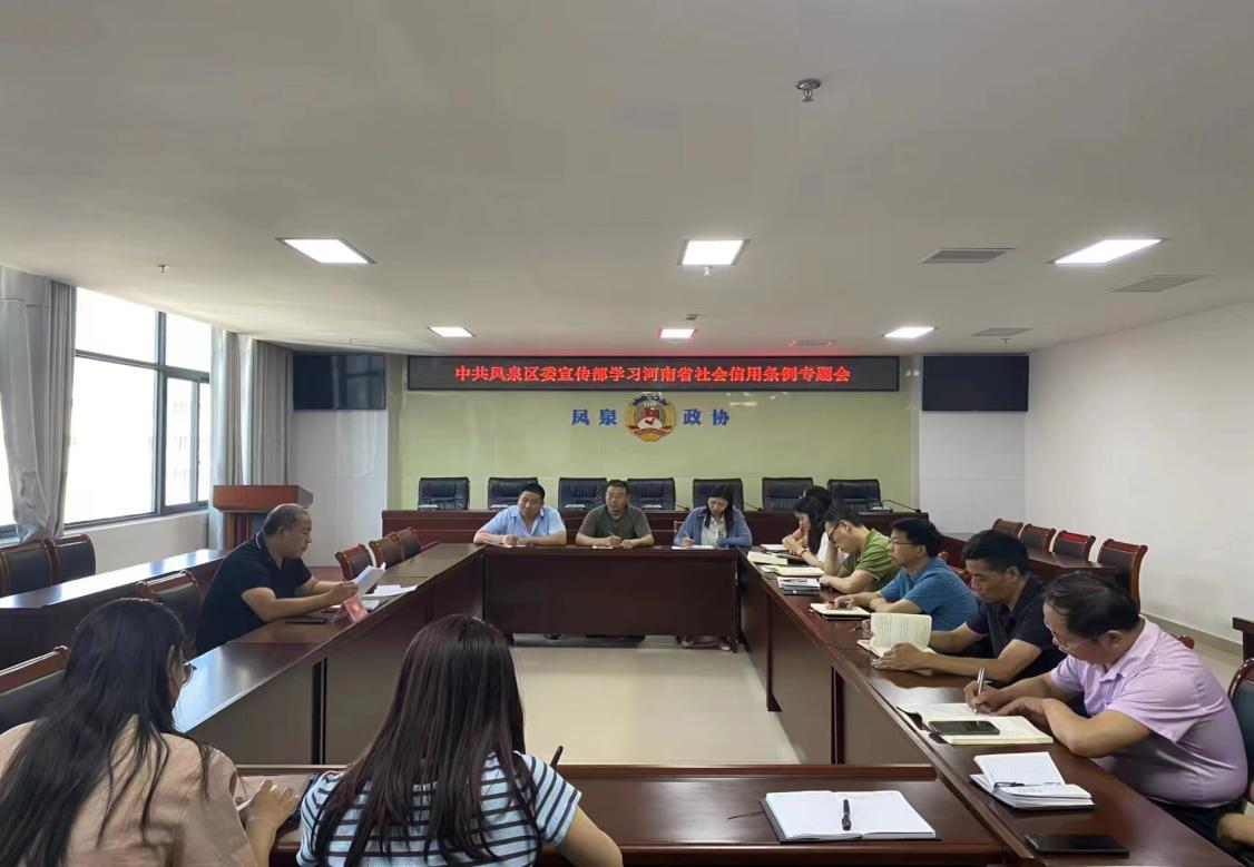 2023年7月4日,中共凤泉区委宣传部学习河南省社会信用条例专题会在新乡市凤泉区人民政府412会议室召开,由王磊同志主持。未来学院“青马工程班”驻新乡市凤泉区委宣传部实践分队成员共同参与了中共凤泉区委宣传部理论学习工作例会。