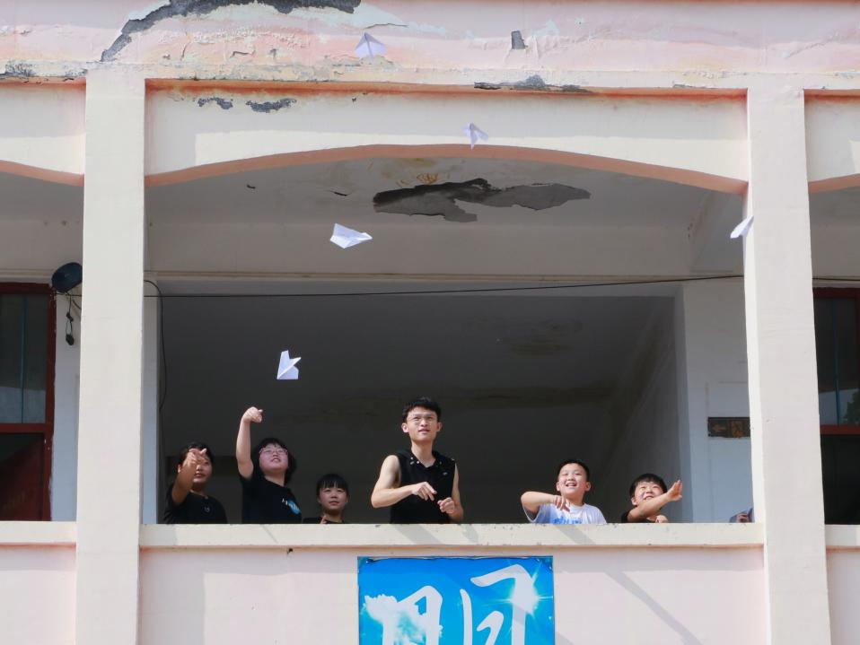 “每个人身上都有光,重要的是如何让它发光。” 一切美好的事物都是曲折的接近自己的目标,时间本身就是一个圆圈。念念不忘,必有回响,不忘初心,方得始终!对于西王屋小学的同学们而言,正因外部环境艰苦,才更不应该停下奔跑的脚步。“天地本宽,而鄙者自隘”,实践队员们希望让孩子们明白努力的意义,哪怕微小如苔花,也有盛放的高光时刻,要永远坚定地对自己说“我可以!”,这也是支教团开展“我的未来不是梦”这堂心理健康课的初心。在课堂上,队员们让小朋友们在纸上书写自己的梦想,并折成属于自己的纸飞机,并于风起之时一同放飞!高飞远航的,是孩子们的纸飞机,是孩子们的心之所向,也是小朋友和实践队员们一同飞扬激荡的青春!