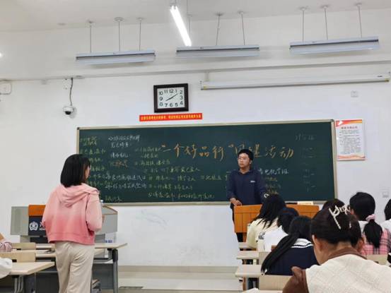 汉语言文学一班和汉语国际教育专业二班围绕“丹彩墨香,书为心画”主题开展书法作品征集活动,学生积极参加比赛,展示自己的一手好字,传承并发扬中国的汉字文化。汉语言文学专业优师计划班、二班分别开展了“一口流利的普通话” “一堂好课”的班级活动,他们发挥专业特色,通过精彩的演讲与朗诵,让同学们意识到普通话的重要性。汉语国际教育专业一班开展“敬老成风尚,举贤传德风”主题征文活动,参赛学生以重阳节为背景,书写敬老爱老征文,展现了亲情的魅力。戏剧影视文学专业班于东区操场开展“体育强身,精神铸志”体育趣味活动,学生们通过跳绳与跑步两项比赛进行体育锻炼,提高运动技能水平。广播电视学专业班举办“金秋十月暖人心,学习榜样养品行”的主题活动,他们以“一个好品行,大家来分享”为活动出发点,通过三个简单的游戏让大家了解榜样的事迹,树立榜样意识,学习传承榜样精神。