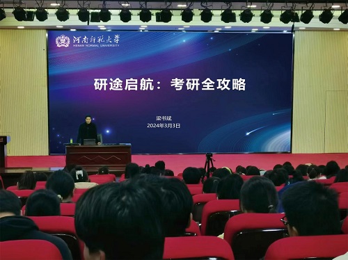 讲座中,梁书斌以“研途启航:考研全攻略”为主题,对如何掌握科学的备考学习方法进行了分析与讲解。他讲到,一要在了解国家政策基础上结合自身情况制定详细的学习计划,合理分配时间;二要不断提升解题速度,探索适合自己的学习方法,强化各科知识点的综合运用能力;三要定期进行模拟自测,增强心理素质,全面提高应试技巧。此外,他围绕政治、外语、业务课等科目系统分析了考研学习方法,他强调,政治理论切忌死记硬背,要活学活用、多关注时政热点提升政治素养;英语学习要注意打牢基础,坚持每日练习长难句和单词积累,并对历年真题不断进行复盘与整理;业务课学习重点在于建立自己的逻辑体系,建立网状知识框架,灵活应用知识点。学习备考重在坚持,赢在策略,最后,梁书斌真诚祝愿同学们“奋力拼搏,成功上岸”!