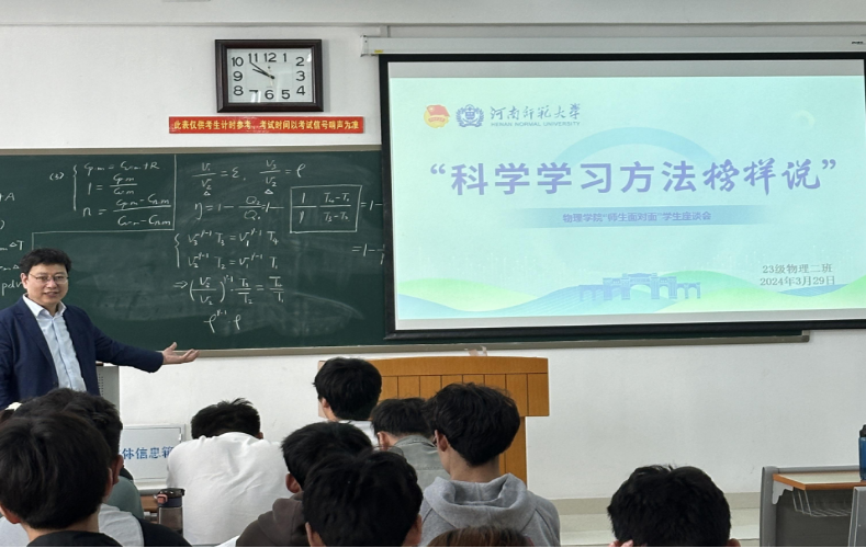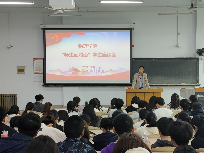 为帮助同学们进一步明确目标,端正态度,优化学习方法,以更加崭新的精神面貌和昂扬的斗志迎接接下来的挑战,物理学院在文昌楼110教室召开师生面对面活动座谈会,热学教师贾光瑞与57名学生代表共同座谈交流。