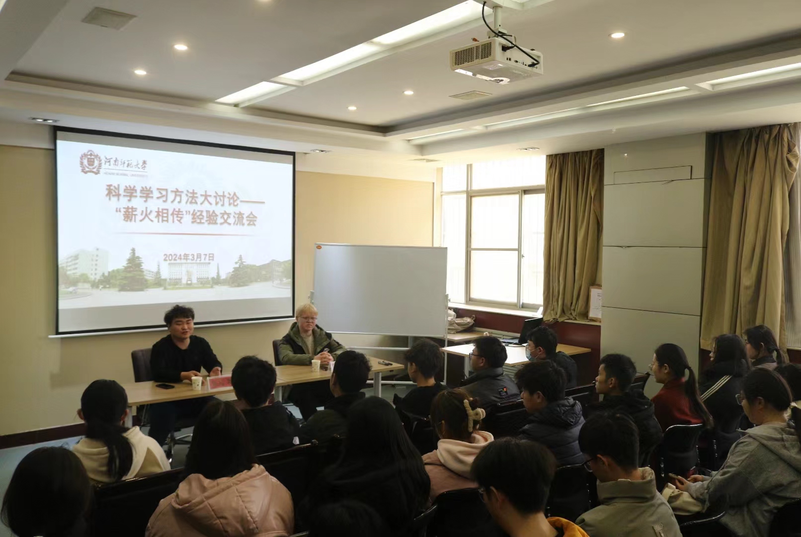 大四学生代表田佳乐、陈玉环就把握学习重点、分散复习压力等方面与大家进行了分享,并给大家推荐了几款实用且易上手的学习辅助软件;李小璐、管俊翔就高效记忆知识点、巧用思维导图系统学习等方法与同学们进行了深入探讨,为低年级学生掌握科学学习方法提供了帮助。