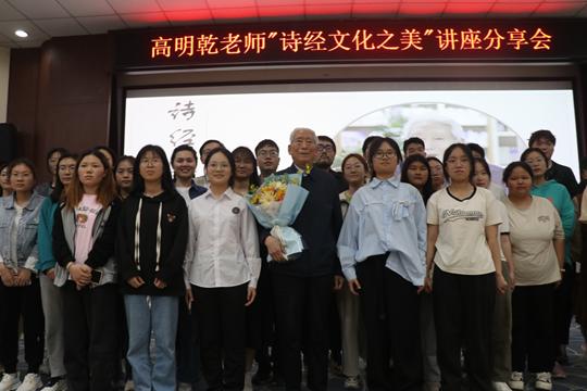 开展“诗经文化之美”讲座目的在于通过感悟诗经之美和文化之脉树立青年学子的文化自信,引导学生树立正确的审美观念,陶冶高尚的道德情操、塑造美好心灵。讲座伊始,高明乾老师询问同学们是否读过《诗经》,得到了现场热烈的反应。接着高老师围绕《诗经》的教化作用、精神内涵和思想内涵展开,以文学和历史为载体,深入挖掘了其背后的思想文化价值,描绘出了一幅历史与神话交织的沧桑壮观的人文盛景。令人耳目一新的是,高老师从自然美的角度,详细介绍了《诗经》中的鸟兽草木及其背后诗意所在。在近两个小时的讲解之后,高明乾老师以深刻的人生感悟作结,告诫青年要有强烈的报国心和无私的奉献精神,并以此为动力努力实现自我的人生价值。