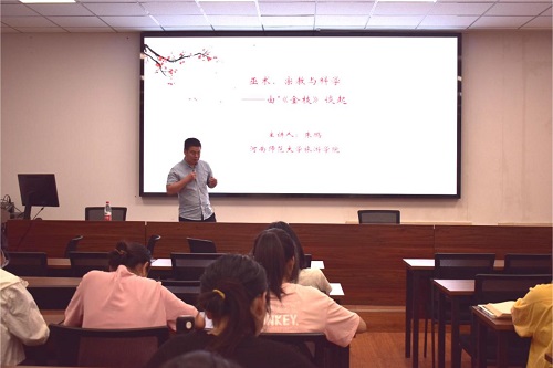 书香伴青春,经典共相约。5月21日晚,由校团委主办、旅游学院承办的第三期青春读书课活动在琢玉楼行知讲堂成功举行。此次活动导读教师为旅游学院朱鹏,课堂以探讨古罗马原始习俗为主题,引导来自全校的近百名同学深入领略《金枝》一书的魅力。