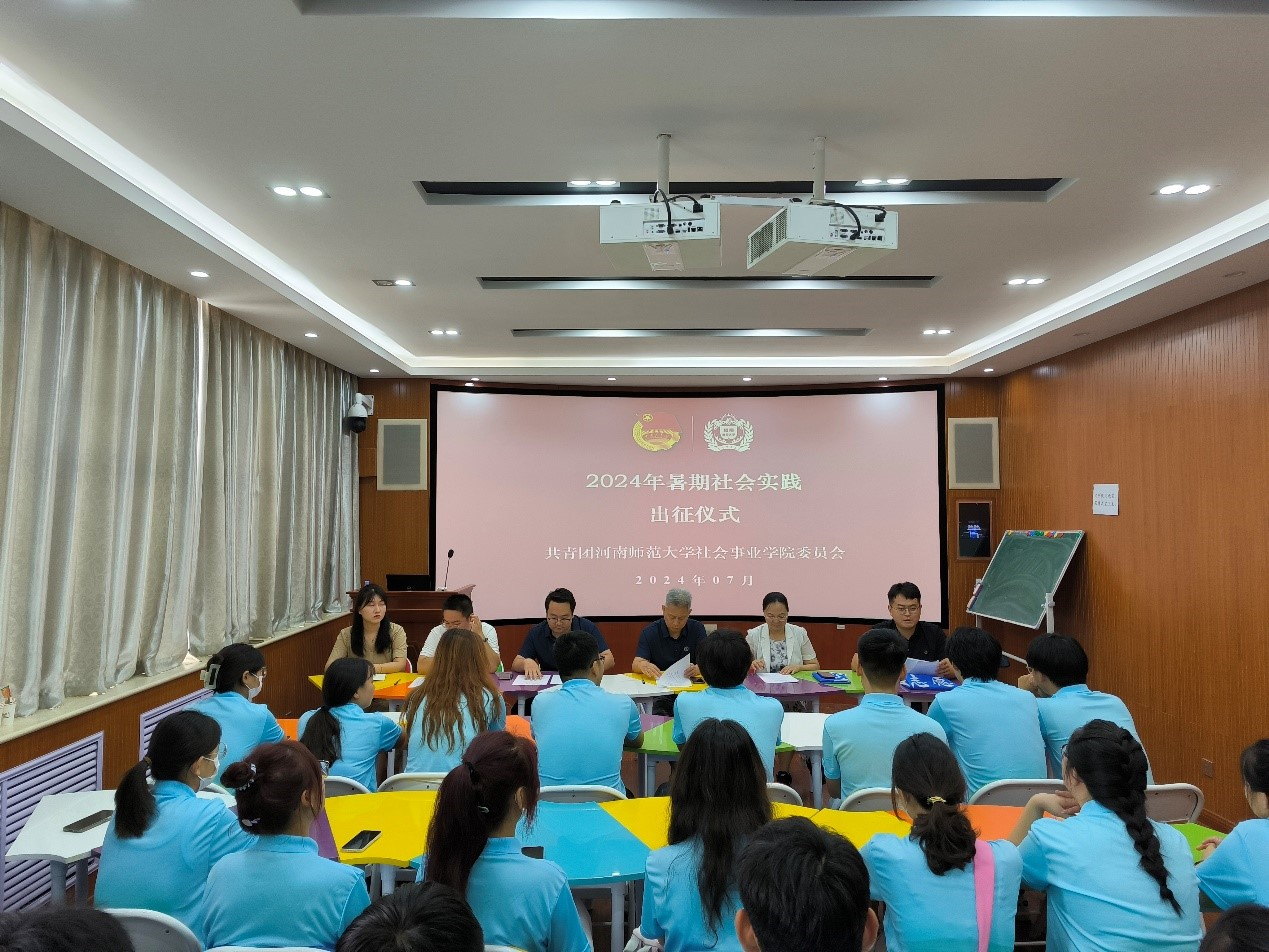 7月9日上午,社会事业学院2024年暑期“三下乡”社会实践活动出征仪式在崇智楼503室举行,学院相关负责人、实践队员代表40余人参加。此次出征仪式由学院团委书记田嘉玺主持。