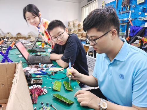 7月11日计算机与信息工程学院正式启动“智慧编程,点亮童心”少儿编程教育宣讲团“三下乡”暑期实践活动。计算机与信息工程学院团委书记兼本次实践活动的指导敦洁老师,带领团队成员前往科技创新教育的前沿阵地——“莱德创客空间”教育机构,旨在通过亲身体验与深入学习,为推动科技创新教育深入基层、服务地方发展贡献力量。