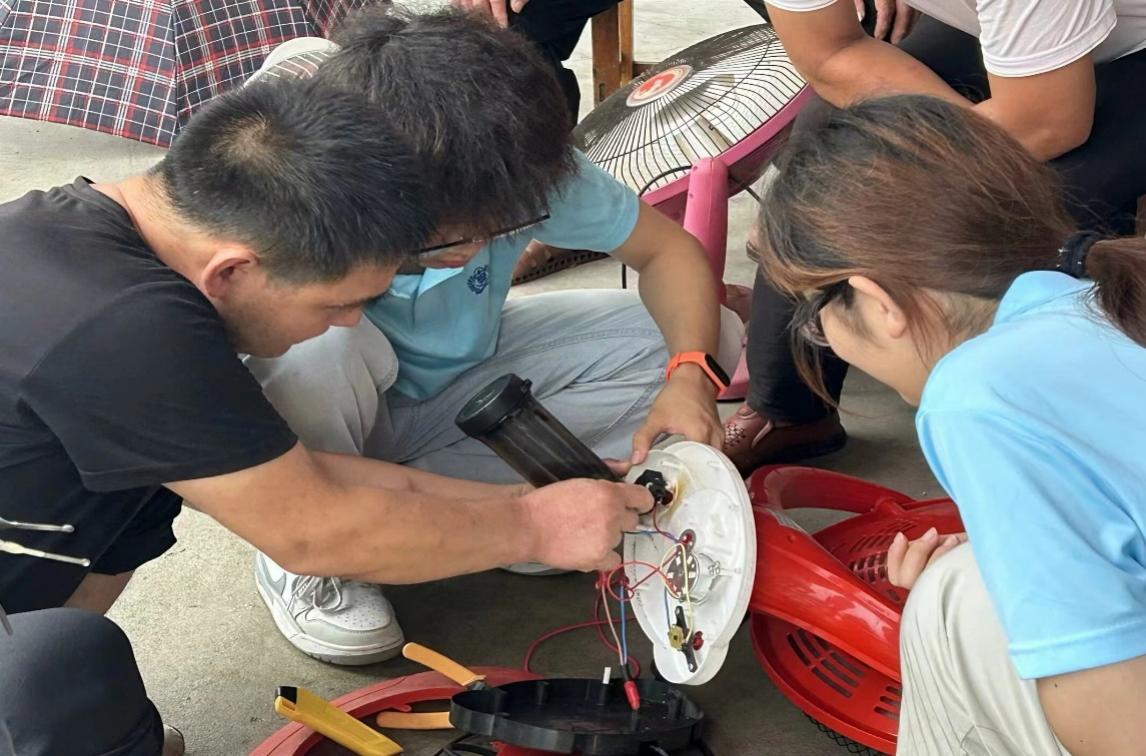 到达土门村后,实践队员们随即在村口支起义务维修志愿服务点。村支书向村民们表达学生们这次实践目的后,村民带着有故障的电器来到服务点。在老师们指导下,实践队员通力合作,他们不怕脏、不怕累,认真检测,小到手电筒、热水壶,大到电风扇、电暖扇,专注地投入到每一个维修任务中。他们凭借扎实的专业技能和丰富的实践经验,一一为村民排忧解难,让一件件“身患重疾”的电器在他们的巧手下又恢复了“健康”。对于无法修复的电器,他们详细解释了损坏原因,并提供了专业的维修建议。看着村民们满意的笑容,实践队员们也感受到了付出的快乐和价值。期间,实践队员还开设了科普小课堂,向村民们讲解家电使用常识以及简单的故障排查技巧,通过生动的案例和直观的演示,向村民们讲解用电安全的重要性。