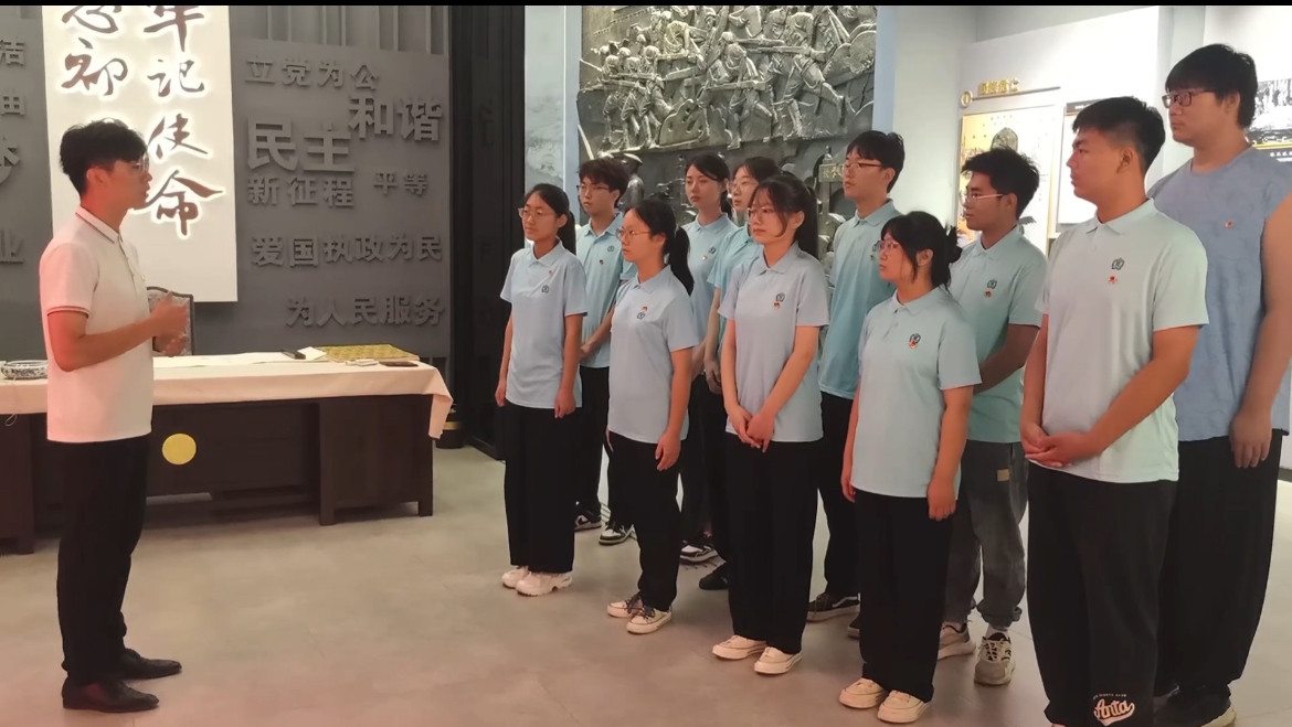在参观过程中,讲解老师从民族危亡、纱厂磨难、豫北星火、红色家风等15个板块进行详细解说,生动还原了“一门双烈”刘海珠、刘海秋的革命事迹。同学们从情景剧《红色的火种》中,深刻感受到了红色家风在刘海珠、刘海秋家族中的赓续传承。面对先烈的壮举,实践团全体成员在党旗和团旗面前庄严宣誓,势必不忘初心,牢记使命,以饱满的热情和坚定的理想信念继承先烈们的意志,共同将红色精神继续传承下去,为实现中华民族伟大复兴的千秋伟业贡献磅礴力量。
