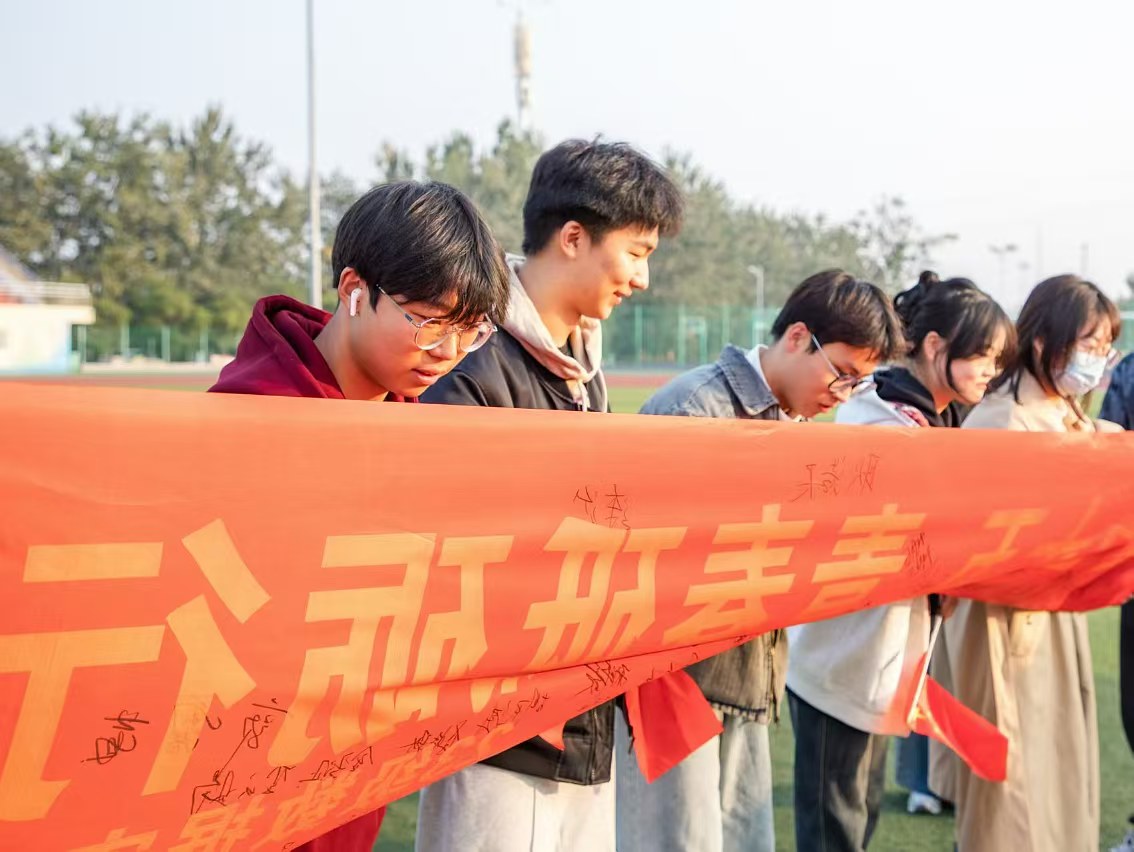 为积极响应校团委“阳光团日”主题团日活动工作部署,庆祝祖国七十五周年华诞,10月22日,软件学院在平原湖校区操场开展“辉煌七十五,青春砥砺行”主题团日活动。软件学院2023级计科数据安全专业2班团支部全体同学、院团委组织部工作人员参加。