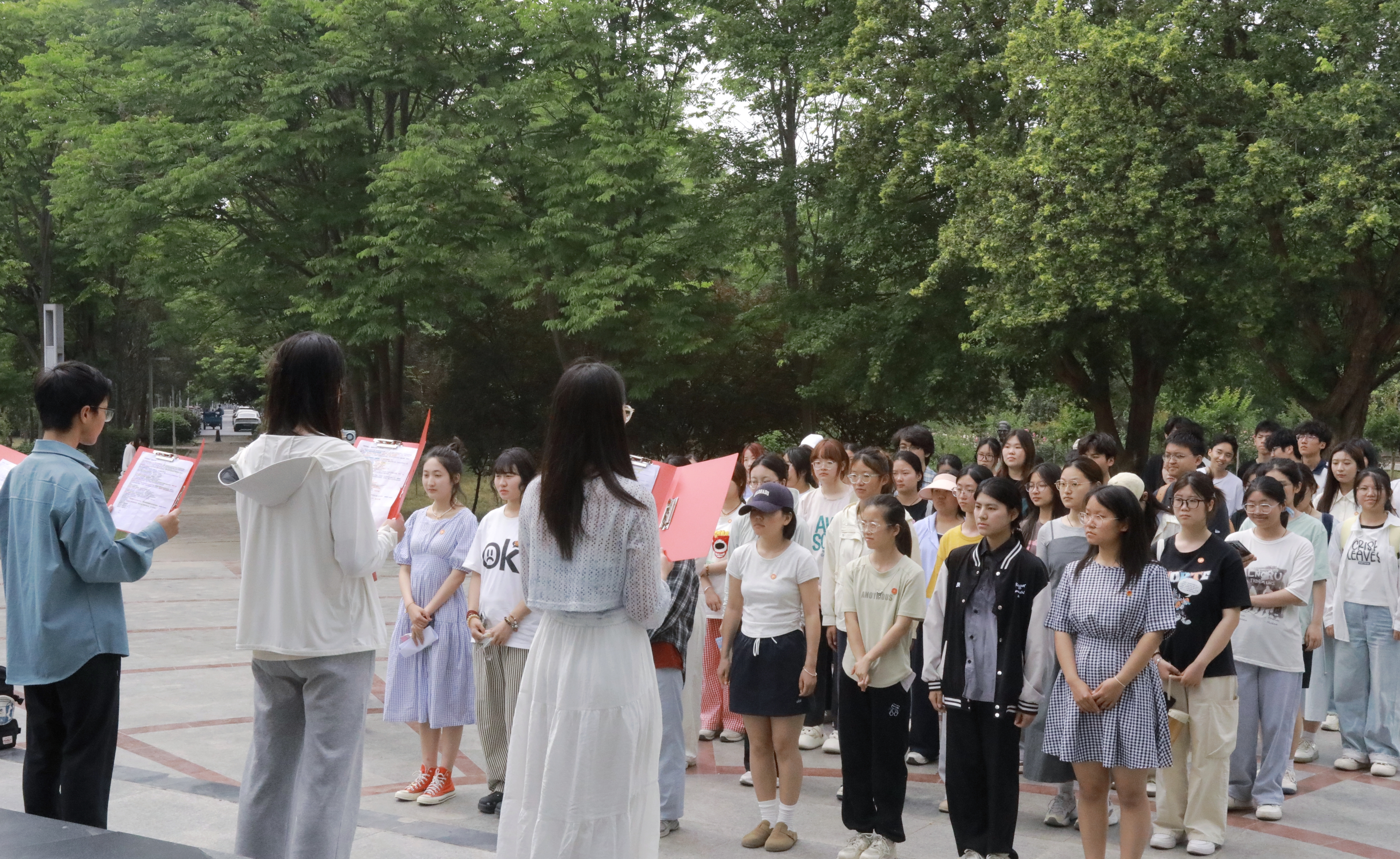 为庆祝抗日战争胜利80周年,5月8日上午,教育学部在中心花园开展“青春逐梦,薪火相传”阳光团日活动。2024级年级团支书马科宇、学前教育专业团支书海玥主持活动,2024级学前教育和小学教育两个团支部60余名团员参加。