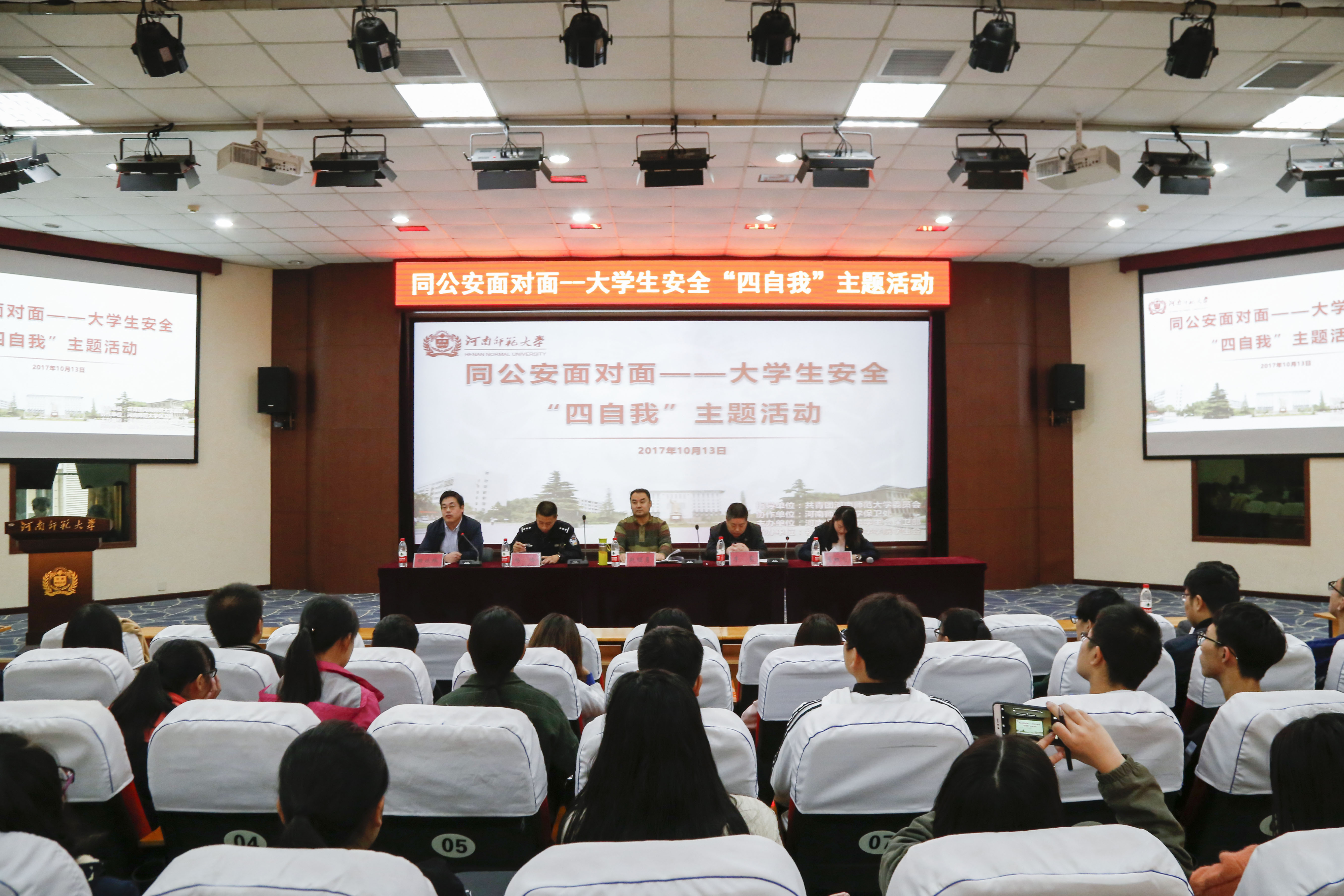 为全力以赴做好保稳定、护安全、促和谐的各项工作,以实际行动迎接党的十九大胜利召开。10月13日,在校团委与保卫处的联合指导下,校学生会安全保卫部组织开展了“同公安面对面――大学生“四自我”主题活动。校党委保卫部副部长、保卫处副处长田歧瑞,校团委组织部部长、校学生会副秘书长冀虹飞莅临活动现场。犯罪侦查支队赵旺勇,国保反恐支队李震,交警管理大队杨岭应邀出席此次活动。各学院安全保卫相关负责人员积极参与其中,认真领悟会议精神。活动由校团委组织部部长、校学生会副秘书长冀虹飞主持。 校党委保卫部副部长、保卫处副处长田歧瑞致辞。他指出:大学是一个人走向独立自主的必经之路,而在大学中安全问题是每一个人需要面对的第一关。会上,他将当代大学生所要面临的安全问题分为宗教安全、网络安全和交通安全三类,并向受邀参会的警官和同学表示感谢。此外,田歧瑞对各院负责安保工作的学生提出了期望和要求。他希望同学们能切实负起责任,做好安全保卫工作,为同学们营造一个安全和谐的校园学习环境。 三位公安干警依次针对“境外非政府组织、宗教及其反恐怖工作”、“网络电信诈骗”、“文明交通”三大方面为安全保卫成员做详细的讲解与交流并通过“宝马行骗记”、“猜猜我是谁”等真实案例让在场学生真切的感受安全保卫的重要性。此外,公安干警还为在场学生播放了交通违规视频,警示在场学生遵守交通规则、重视生命安全。 本次活动由共青团伟德官网下载苹果版委员会和校党委保卫部联合指导,校学生会保卫部主办,物理与材料科学学院学生会承办。同公安面对面――大学生“四自我”主题活动的开展是我校深入学习、贯彻“习近平总书记系列重要讲话和关于做好安全稳定工作重要指示精神”的生动体现,利于营造稳定和谐的校园环境,推动平安校园建设。 (校学生会 姜 涵 责任编辑 张斐然) |
