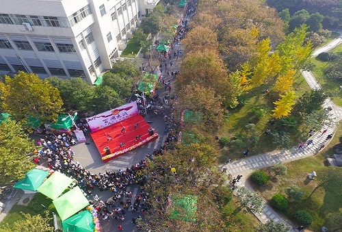 为帮助新同学融入大学生活,感受丰富多彩的社团文化,10月28日至29日,我校百余个学生社团在正学路、立德路两侧上演“百团大战”,开展各具特色的社团展示活动和2017年的招新工作。 28日上午,校工会主席岳杰勇莅临现场指导社团工作。岳杰勇在大学生创业就业训练营、新农村建设学会等社团的摊位前了解社团发展情况,认真询问社团招新情况,并对社团今后的发展思路和方向提出了指导意见。 劲爆的音乐,火热的氛围,招新现场人声鼎沸,热闹非凡。学术科技、爱心公益、社会实践、文化艺术和兴趣爱好五大类社团纷纷拿出看家本领,精心布置招新摊位,倾力展示社团特色,吸引新同学加入。独具社团特色的科技航模、年画剪纸、手工花朵等吸引了大量同学驻足观看。为扩大社团活动影响,校学生社团联合会在万人餐厅西南角和校训石广场搭设舞台供社团展演,MJ舞协会的舞蹈《Dangerous》、相声小品协会的小品《劝架》以及交谊舞协会的舞蹈《爱你》等节目异彩纷呈。为维护学生的切身利益,确保招新活动有序进行,校学生社团联合会设立了招新咨询点,安排值班人员为同学们解答疑惑,确保招新活动井然有序。 本次“百团大战”的主题为“献礼十九大,社团纳新才”,许多社团围绕学习贯彻十九大精神进行相关的特色活动展示,如相声小品协会的快板《河南赞歌》,非物质文化遗产协会的朗诵《深深非遗梦 代代传承心》等节目表达了师大“社团人”对十九大胜利召开的喜悦心情。 (校学生社团联合会 马韵黎 姚 祯) |