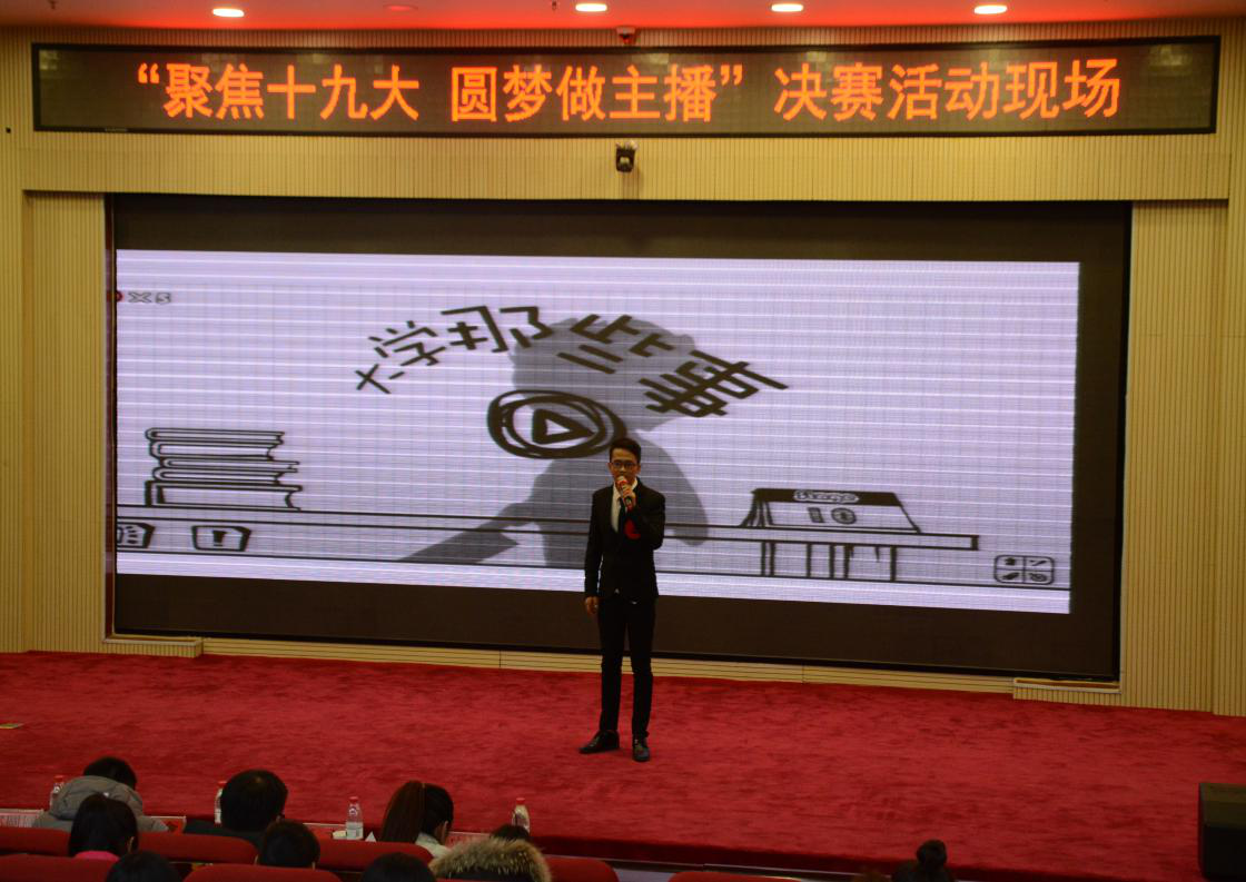 演绎让青春出彩——在谈到“聚焦十九大,圆梦做主播”活动举办初衷时,化学与化工学院团委书记卢鑫说到,“理科生不光要会做实验,也要更加了解时政,因此我们以学生喜闻乐见个人展演的方式,引导学生结合十九大与自身专业相关知识,将大道理转化为小活动。” 我校中国特色社会主义理论学习研究会化学化工学院分会、外国语学院分会、社会事业学院分会、历史文化学院分会、生命科学学院分会、法学院分会以主播和脱口秀结合的方式举办了“聚焦十九大,圆梦做主播”活动。“学习理论知识是一个输入的过程,观看完这次的活动能让我们把所感所想输出化,二者的结合加深了我对于十九大精神的理解。”法学院 2016级法学专业的朱仕攀如是说。