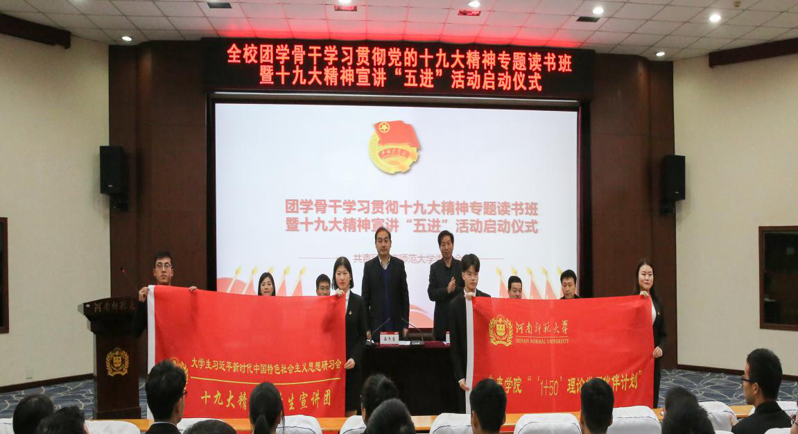 党有号召,团有行动。在我校“习近平新时代中国特色社会主义思想研究中心”成立的第二天,我校马克思主义学院2016级研究生潘博博等十余名学生自发成立了“大学生习近平新时代中国特色社会主义思想研习会”。依托研习会成立党的十九大精神大学生宣讲团,宣讲团由12名优秀学生党员组成,通过团学干部学习会、主题团日、专题班会等多种形式开展十九大精神宣讲,不断推动党的十九大精神深入基层、深入青年。“不忘初心、刻苦学习,牢记使命,科学传播,每一位团学骨干都要积极成为习近平新时代中国特色社会主义思想的宣传员、讲解员。”潘博博在前往我校扶贫村柳湾村进行宣讲时说到。