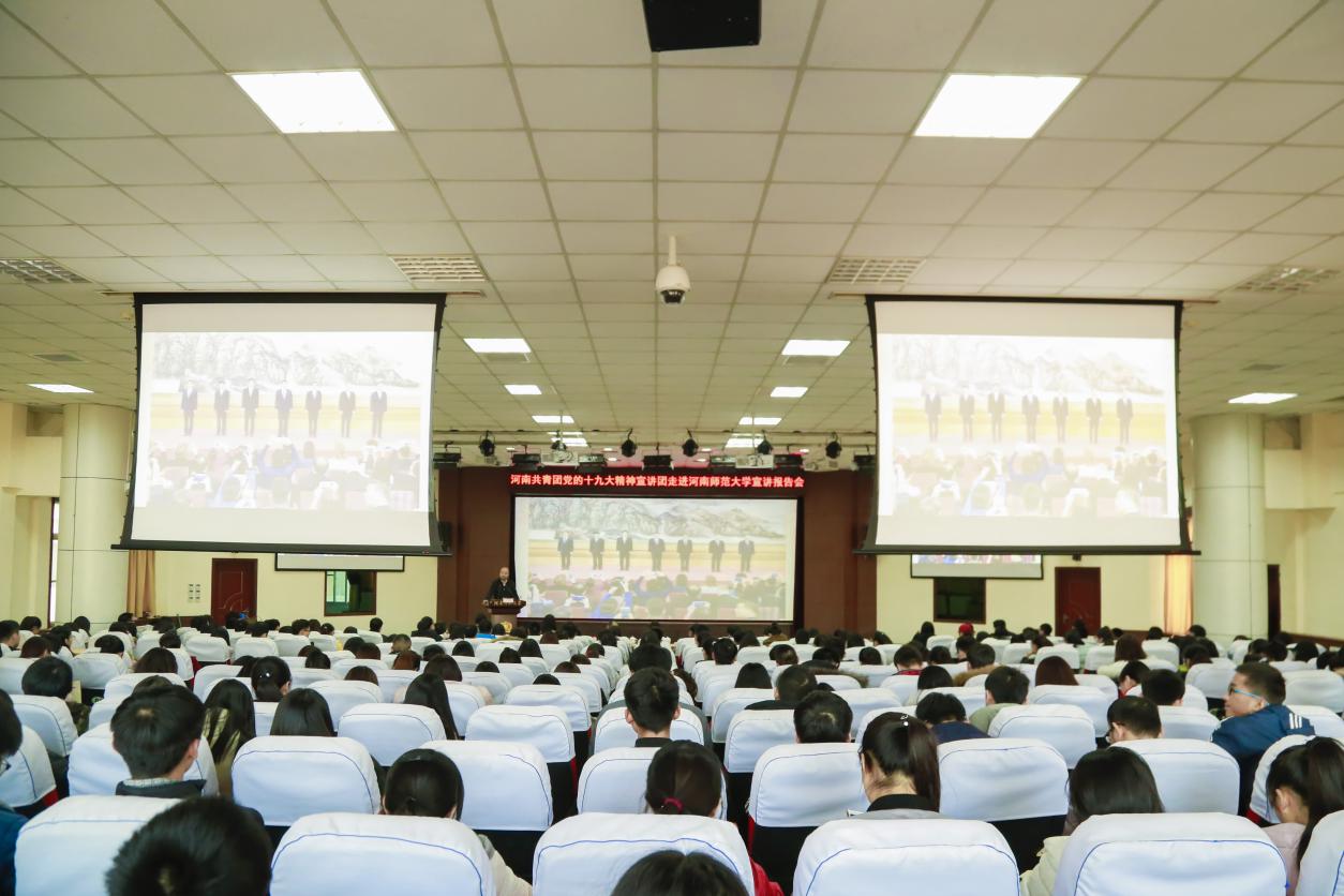 12月21日下午,共青团河南省委副书记武皓在我校物理北楼报告厅,以“不忘初心 牢记使命 不懈奋斗 在新时代中放飞出彩青春”为主题,就学习宣传贯彻党的十九大精神作宣讲报告。校工会主席岳杰勇、团省委青年发展部副部长岳国民、徐慧强出席活动。我校专兼职团干部、校学生会、校社团联合会、未来学院、基层团学组织等大学生骨干共380人聆听了报告。