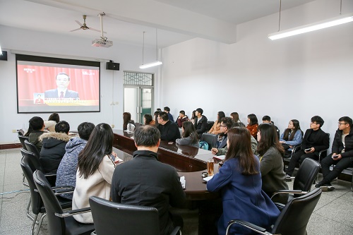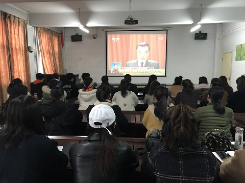 校团委组织我校青年师生收看十三届全国人大一次会议开幕会