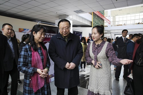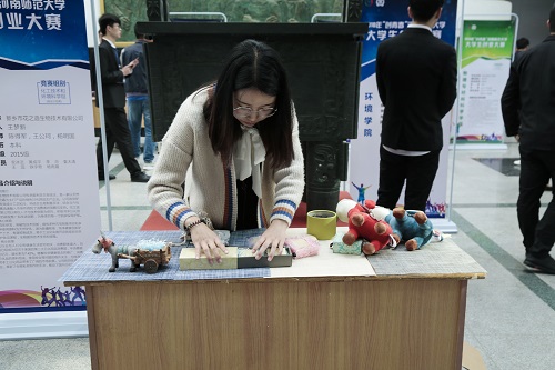 创新凝聚力量,创业放飞梦想。4月14日-16日,我校2018年“创青春”大学生创业大赛终审决赛顺利举行。原河南省文联主席、河南省书法家协会主席杨杰,校党委书记赵国祥莅临现场指导。校党委副书记陈广文出席活动并发表讲话。河南科隆集团有限公司董事长、总裁、我校政治与公共管理学院87届校友程清丰,新乡拓新生化股份有限公司董事长、我校化学化工学院83届校友杨西宁,河南东海复合材料有限公司董事长、我校化学化工学院85届校友王鸿军等企业代表出席活动,并与我校签订大学生科技创新实践基地框架协议。党委学工部、党委研工部、校友工作办公室、就业创业指导服务中心、校团委等相关职能部门负责人,各学院党政领导,评审专家、指导教师、团委书记及学生代表共两千余人参加了终审决赛开幕式、问辩、答辩、作品展示等活动。 赵国祥莅临作品展示现场看望参赛师生,仔细了解作品情况,认真给予指导。赵国祥对同学们结合专业学习积极开展创新创业实践表示高度赞许,鼓励同学们主动融入新时代经济社会发展大势,积极参加创新创业实践,提升专业学习成效,努力成长为德智体美全面发展的优秀人才。在文学院《“一纸花约”创意有限责任公司》展示台前,赵国祥高兴地说:“同学们有创意、有头脑、有能力,不畏技术、成本等难关,将优秀成果展现出来,你们就是最富有朝气的创业生力军,是值得学习的榜样,是师大人的骄傲。” 开幕式现场热烈隆重。陈广文致开幕致辞。他指出,随着新发展理念的深入贯彻,创新创业必将成为国家发展的重要驱动、青年建功的时代旋律。他对广大青年学子提出了三点希望:一是希望同学们勇于担当,在推动国家进步、促进社会发展中追逐青春梦想。二是希望同学们脚踏实地,在紧跟时代潮流、引领创业风尚中始终走在前列。三是希望同学们抢抓机遇,在投身大众创业、万众创新中谱写精彩人生。他强调,全校各单位要提高认识、解放思想、主动担当、积极作为,完善体制机制、整合各类资源、营造良好氛围,合力推进创新创业教育,全面提升人才培养质量,推进学校国内知名、区域引领、特色鲜明的高水平大学目标早日实现,以优异的成绩向我校第十二次党代会献礼。 开幕式上,音乐舞蹈学院2016级刘馨远同学代表参赛学生发言。校团委负责人与企业代表签订大学生科技创新实践基地框架协议。 开幕式结束后,学校领导、企业代表、指导教师深入作品展示区进行观摩指导,评审专家对参赛作品进行现场问辨。河南科隆集团有限公司董事长、总裁程清丰积极关注《百特锂电科技有限公司》项目,针对锂电池的制作过程、应用方向以及新能源的发展与项目成员进行了交流指导。14日下午,参赛作品进行了秘密答辩。“据”宝盆公益项目团队成员文学院2016级汉语言文学专业学生张雨激动地说“这是我第一次参与‘创青春’,它让我在增见识、长知识中开阔眼界,我会虚心学习,继续发扬创新创业精神,让更多的人知道它、参与它,让创新创业成为‘接地气’的生动实践。” 今年我校“创青春”大学生创业大赛继续秉承“重发动、重培育、重评审、重实战”的工作原则。大赛自2017年11月启动以来,共选拔各类作品170件,重点选拔立项的34项作品进行重点培育,先后举办多场“创青春”创业训练营,邀请行业专家对参赛学生进行精准辅导。最终,共有84件作品入围终审决赛,其中创业计划类作品64件、公益创业类作品17件、创业实践类3件。终审决赛后,学校将推选优秀作品参加省级比赛。 (校团委 陈桂玲 郑 彦/文 青年传媒中心/图)