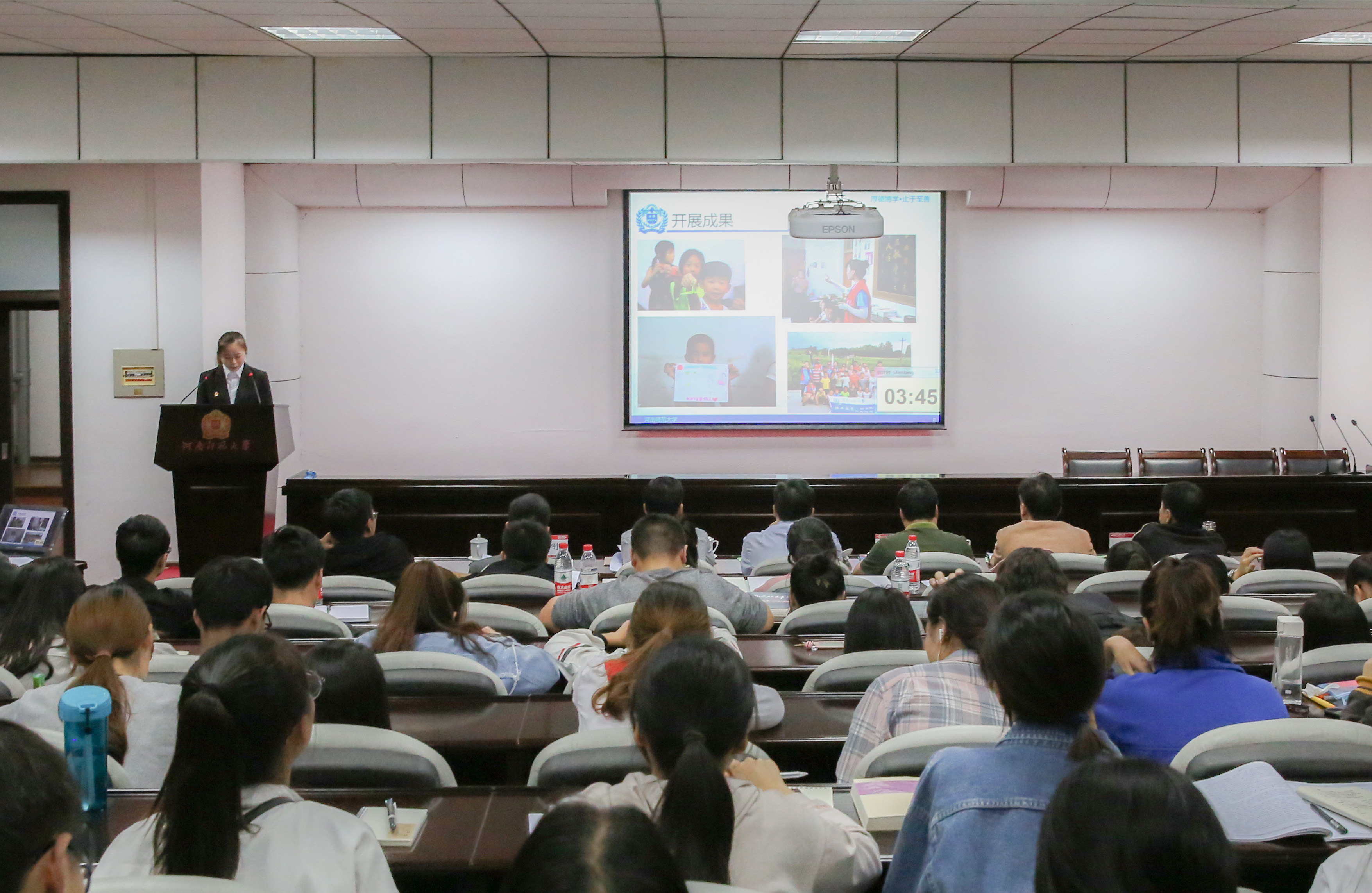 9月27日、28日晚,我校在勤政楼第四会议室举办2018年暑期“三下乡”社会实践成果汇报展示活动。党委宣传部、学工部、研工部、教务处、校团委等部门负责人出席活动并担任评委。各学院团委书记及学生代表参加活动。 活动伊始,校团委副书记张合介绍了我校2018年暑期“三下乡”社会实践活动的开展情况。他指出,暑期“三下乡”社会实践是学校实践育人的重要组成部分,开展实践成果汇报展示活动是构建“全链条”实践育人模式,扩大实践育人成效的重要举措,目的是交流经验、展示风采、挖掘典型、扩大实效。 汇报展示阶段,入围的43支实践团队的代表以PPT、微视频等形式分别介绍了他们的实践过程和取得的实践效果。其中,环境学院“出彩中原”原阳县生态城市建设调研团对原阳县基础环境生态建设的发展现状进行调查,为当地生态决策提出可行性意见,充分发挥了当代大学生的创新性思维,让实践队员担负起青年的责任;水产学院“美丽乡村”渔业水域生态环保服务团紧紧围绕党和国家重大战略任务进行了行程的合理规划,做到了考察服务和学术科研相结合,激发了师生的家国情怀;教育学院“浓浓书香情,成长伴我行”教育关爱志愿服务团发挥教育春风化雨的力量,带着爱与关怀投入到兰考县义务支教活动,为爱教书育人的精神令现场感动;政治与公共管理学院“举改革之力,谱荒村新篇”调研团躬身实践挥洒青春,面对重重困难咬牙坚持,与当地干部融洽交流,同老乡和孩子欢声笑语,并在调研过程中写就十六余万字的宣传文稿,社会影响良好;未来学院“奋进新时代,筑梦好未来”实践调研队用翔实的数据展现了参与安阳市汤阴县脱贫攻坚第三方评估的历程。各实践队的精彩汇报和展示赢得了在场师生的阵阵掌声。 今年暑期,我校以“青春大学习·奋斗新时代”为主题,遵循“按需设项、据项组团、双向受益、校院联动”的原则,组建了63支社会实践团队,其中8支团队入选团中央专项行动,17支团队立项省级,校级重点团队22支,院级团队24支。火热的七月,广大青年学子积极投身社会实践一线,在广阔的实践沃土中坚定理想信念,锤炼高尚品格,投身创新创造,激发奋斗精神,用自己的实际行动彰显了当代大学生的青春担当。 (校团委 郑 彦 万 鑫) |