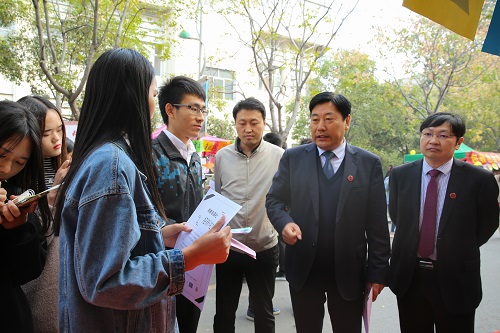 为丰富校园文化生活,促进社团发展,10月17日至19日,我校学生社团在正学路、明德南路上演“百团大战”,开展丰富多彩的社团特色活动展演和社团招新工作。校长常俊标,校党委副书记陈广文,校党委常委、副校长李学志、岳杰勇先后莅临现场指导社团工作。 17日上午,常俊标在活动现场听取了校团委和学生社团联合会负责人关于社团建设的汇报,先后到空手道协会、青春自强社和舞动新愿新疆舞协会等社团了解社团文化内涵、组织建设、品牌活动等情况,并对社团发展予以肯定和鼓励。在舞动新愿新疆舞协会,常俊标与社团成员深入交流,十分关心少数民族同学在师大生活情况,并就社团招新情况进行了解,希望新疆舞协会能够进一步发挥社团优势,多举办一些特色活动,在促进民族文化交流中充分发挥纽带作用。 陈广文、李学志、岳杰勇先后在非物质文化遗产保护协会、大学生创业就业训练营等社团的摊位前了解社团发展情况,认真询问社团招新情况,对社团发展思路和方向提出了指导意见。 招新现场五大类社团通过精致新颖的摊位布置、精彩绝伦的现场表演及独具特色的手工模型等多种多样的形式吸引学生参与其中。为加大社团宣传力度,提升社团影响力,校学生社团联合会在万人餐厅西南角和校训石广场搭设舞台进行社团展演,威风凛凛的舞狮表演、幽默严谨的话剧《法边末班车》、苍劲有力的跆拳道《十级跆风》、玄妙入神的魔术《幻影迷踪》等节目精彩纷呈,引人入胜。此外,为确保招新活动有序进行,维护学生切身利益,校学生社团联合会设立招新咨询点,安排值班人员为学生答疑解惑,常态化开展活动巡逻,确保活动安全有序。 本次活动以“社团纳新才,奋进新时代”为主题,我校百余个学生社团通过形式多样、内容丰富的社团特色活动,进一步提升了社团自身影响力,增强了社团的交流与联系,帮助广大师生深入感知了丰富多彩的校园文化,进一步彰显了以文化人、以文育人的积极作用。 (校学生社团联合会 尚银青 赵 爽/文 青年传媒中心/图) |