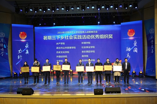 投身实践勇争先,迸发青春正能量。1月3日晚,我校于帕瓦罗蒂音乐厅举办2018年伟德官网下载苹果版实践育人成果展示会。校党委副书记陈广文,校党委常委、副校长李学志,党委宣传部、党委学工部、党委研工部、就业创业指导服务中心、教务处、科技处、校团委、外国语学院、音乐舞蹈学院等相关单位负责人,各学院党委(党总支)副书记、团委书记及学生代表500余人参加会议。 展示会分为“奉献新时代”、“开创新未来”、“引领新青年”、“激发新活力”四个篇章。“奉献新时代”篇章首先以视频形式回顾了社会实践及志愿服务征程中实践队员们的忙碌身影,在情景剧《追寻》中,演员以浓厚的情感和投入的表演,将实践团队坚定不移,不忘初心的执着与追求体现得淋漓尽致,令观众感受到了青年人在新时代中的责任与担当;节目《梦想的种子》由我校研究生支教团成员自编自导自演,通过学生与支教老师间的亲密对话,展现了支教老师与孩子们的深厚感情,生动诠释了志愿服务的精神内涵。“开创新未来”篇章展现了师大学子在创新创业、学科竞赛中的坚定从容,节目《晨阳》用话剧的形式表达了青年人在响应时代号召,积极投身创业浪潮过程中,面对种种困难不轻言放弃,激励莘莘学子在大众创业,万众创新的大背景下绽放青春光彩。接下来的“引领新青年”篇章总结了师大新媒体人在团属新媒体建设中的丰富成果,《时代交响曲》则以舞蹈的形式展示师大学子与网络的故事,亮出了网络思想政治工作中我校团属新媒体的靓丽名片。第四篇章“激发新活力”展示了师大社团缤纷绚丽的文化活动,社团节目《韵动青春》以古琴与汉服的结合、轮滑跟新疆舞的混搭、街舞与歌曲的融合使观众感受到了我校社团浓郁的文化底蕴和青春活力,展现了我校社团的无限魅力与风采,为观众带来了一场视听盛宴。最后,展示会在《我和我的祖国》的合唱声中圆满落幕。整场展示会演出形式丰富多彩,情感抒发真挚热烈,激励师大学子共同谱写新时代青年奋进之曲、圆梦之歌。 展示会上表彰了在我校暑期社会实践、创新创业竞赛、新媒体网络实践和学生社团建设等重点实践育人工作项目中涌现的优秀组织和个人,与会领导为他们进行了颁奖。 近年来,我校围绕培养德智体美劳全面发展的社会主义建设者和接班人的根本任务,创新工作思路、拓展育人路径,将实践育人作为人才培养的重要环节,推动构建了社会实践、志愿服务、创新创业、网络媒体、学生社团协同发力的大实践育人格局。不断完善社会实践、志愿服务工作机制,推进社会实践和志愿服务常态化、制度化、规范化,寒暑期社会实践、研究生支教团常做常新、品牌更加响亮,“我是师大代言人”“小时光”公益课堂、共青团文明路等崭新项目因势而生,广大青年学子用知识奉献基层一线,用责任寻找青春方向,用担当定位人生坐标,在中原大地谱写了一曲曲与祖国共奋进、与时代同发展、与人民齐奋斗的青春之歌。 (校团委 张楚涵 范果果/文 青年传媒中心/图) |
