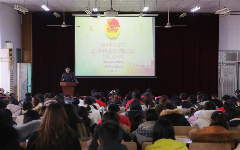 1月17日下午,我校2019年寒假社会实践招生宣传专项行动培训会在学苑餐厅三楼多功能报告厅举行。校团委、招生办公室有关负责人,全体实践队员350余人参加了本次培训会,会议由校团委创新实践部部长孙晓主持。