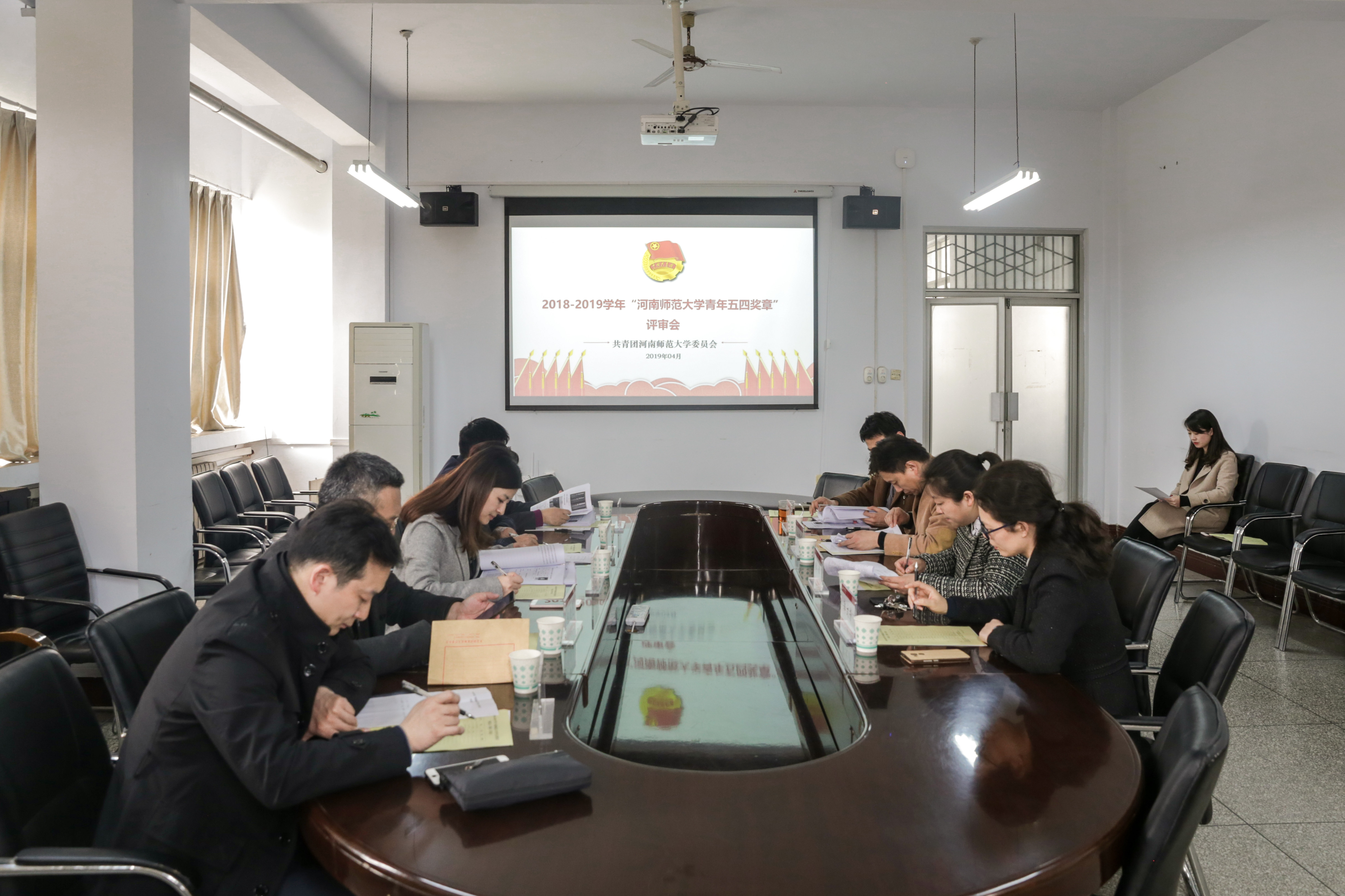 4月11日下午,2018—2019学年“河南师范大学青年五四奖章”评审会在校团委会议室举行。心理健康教育中心主任皇甫艳玲、校团委书记孙冬青、党委组织部副部长包晓光、党委学工部副部长、学生处副处长康海军、党委宣传部副部长华锋、人事处副处长李津、校长办公室副主任郭文芳、教务处副处长佘德峰、校团委副书记张合组成评审委员会,对入围候选人(集体)进行评审。