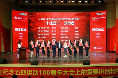 5月7日下午,我校“青春心向党 建功新时代”学习习近平总书记在纪念五四运动100周年大会上的重要讲话精神特别主题团日活动在音乐厅举行。校党委书记赵国祥出席活动并发表讲话。校党委副书记陈广文,校党委常委、副校长李学志,校党委常委、校纪委书记张尚字出席活动并为2018-2019学年五四表彰获奖代表颁奖。党委办公室、组织部、宣传部、学工部、研工部、校团委、附属中学团委等相关部门负责人,各学院团委书记,团员代表、少先队员代表共480余人参加了本次活动。主题团日活动由校团委书记孙冬青主持。 赵国祥寄语团员青年。他结合五四运动以来中国共产党领导中国人民艰苦奋斗、砥砺前行的光辉历史,用我校96年筚路蓝缕的办学历程,深刻分析了五四运动的重大历史意义和时代价值,展现了一幅幅师大青年师生赓续五四精神,艰苦创业,教育报国的生动画卷。结合习近平总书记在纪念五四运动100周年大会上的重要讲话精神和省委书记王国生在全省各界青年学习贯彻纪念五四运动100周年大会精神专题座谈会上的讲话精神,赵国祥对师大青年继承和发扬五四精神提出了四点希望和要求:一是自觉涵养家国情怀,做到爱国、爱党、爱社会主义,坚定不移听党话、跟党走,以一生的真情投入、一辈子的顽强奋斗,把实现民族复兴变为现实;二是始终坚定理想信念,始终坚定对马克思主义的信仰、对中国特色社会主义的信念、对中华民族伟大复兴中国梦的信心;三是要奋斗担当时代使命,勇做走在时代前列的奋进者、开拓者、奉献者,以青春之我、奋斗之我,为祖国建设添砖加瓦,为民族复兴铺路架桥;四是刻苦锤炼综合素质,使自己的思想观念、思维视野、认识水平、能力素质能够堪当民族复兴大任的时代要求。 赵国祥强调,把青年一代培养造就成德智体美劳全面发展的社会主义合格建设者和接班人,是事关党和国家前途命运的重大战略任务,是全党的共同政治责任。全校各级党组织、各部门要增强政治意识,不断提高做青年工作的能力和水平,真正做青年师生的知心人、青年工作的热心人、青年学生的引路人。共青团是党的助手和后备军,是党的青年工作的重要力量。全校各级团组织要发扬“党有号召、团有行动”的优良传统,毫不动摇坚持党的领导,不断保持和增强政治性、先进性、群众性,认真履行引领凝聚青年、组织动员青年、联系服务青年的职责,团结带领新时代师大青年开拓创新、奋发有为。 我校2019年“青年五四奖章”获得者、马克思主义学院副院长李翔以纪念五四运动100周年为主题,为现场团员讲授微团课。全国优秀共青团员、文学院2016级戏剧与影视学专业研究生陈辉,我校2019年“青年五四奖章”获得者、社会事业学院2017级学生王晗分别用他们的亲身经历诠释了新时代师大青年的信仰与追求、责任与担当。青年团员原创的音诗画《五四之火》用饱含深情的表演再现了100年前那场声势浩荡的爱国主义运动,情景音舞《信仰的味道》生动演绎了陈望道潜心翻译《共产党宣言》的感人故事,体现出共产党人身上的革命乐观主义精神和坚定的共产主义信仰。集体宣誓环节,少先队员、共青团员、青年党员代表用坚定的誓词重温神圣时刻,感受信仰的力量。活动上,对“青年五四奖章”“十佳团干”“十佳团员”“五好团支部”获奖个人和集体进行了隆重表彰。 本次特别主题团日活动用特别的方式全面深入地学习了习近平总书记在纪念五四运动100周年上的重要讲话精神和省委书记王国生在全省各界青年学习贯彻纪念五四运动100周年大会精神专题座谈会上的讲话精神,对师大青年深刻理解五四精神内核、准确把握新时代青年运动的方向和主题、新时代青年的使命具有重要意义。下阶段,全校各级团组织和青年团员将按照学校党委的要求,迅速掀起学习习近平总书记重要讲话精神的热潮,引领师大青年为百年师大发展再注青春活力,为实现中原更加出彩和中华民族伟大复兴的中国梦再添青春之彩。 (校团委 娄淑静 张楚涵/文 青年传媒中心/图 责任编辑 乔芳) |
