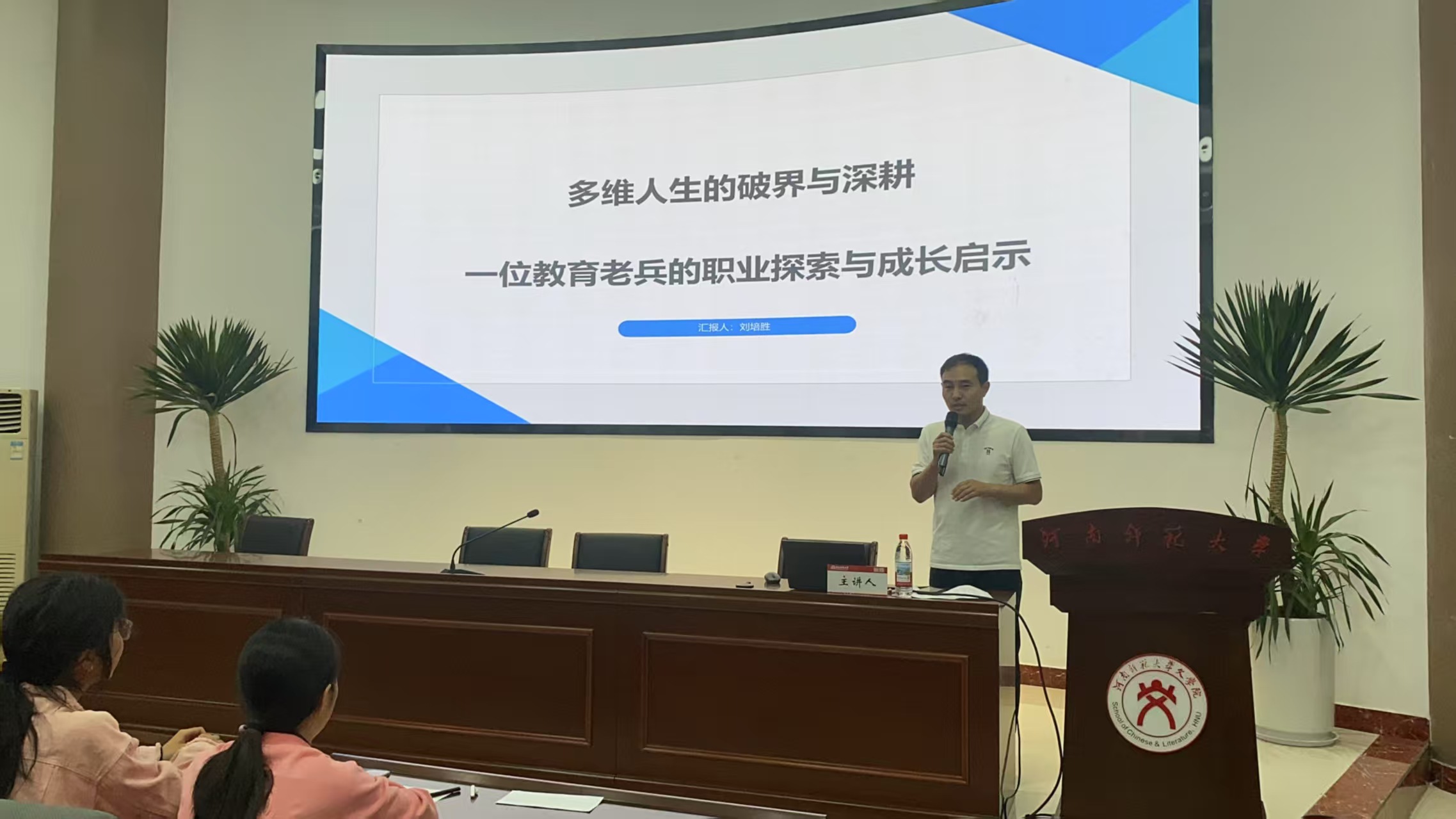 讲座以“多维人生的破界与深耕,一位教育老兵的职业探索与成长启示”为主题。刘培胜老师分享了他从军旅到教育的多维人生经历,从考入中等师范学院,到毕业后放弃教师编制参军。在长达十二年的军旅生涯中,刘老师从懵懂的新兵逐渐成长为技术兵,实现了自我蜕变与成长。退役后,他回到教育系统,从农村教师做起,脚踏实地,逐步晋升为教育局中层干部并担任驻村第一书记,将教育理念延伸到扶贫一线。用实际行动诠释教育工作者的社会责任。刘老师强调:“职业转型不是从头开始,而是将你以往的经验进行创造性转化。深耕某个领域,才能实现价值的持续提升。”他以自己的亲身经历为例,鼓励美院学子在职业规划时,以长期主义为指导,构建可迁移能力矩阵,寻找破解问题与深耕专业的平衡,增强对职业的自我认同感。在艺术领域深耕的同时,与社会服务相结合,实现更大的人生价值。现场学生认真聆听,受益匪浅。 聆听专家讲座,引领教师成长。本次讲座为美院学子拓展了职业规划的新思路,明确了未来发展的多元路径,同时丰富了美术学院师范生教育特色品牌建设的形式,美术学院将继续进行在教师培养方面的积极探索与实践,促进教师的专业成长,为新时代基础教育高质量发展贡献一份力量! (美术学院 王称心 王伊琳 责任编辑 马宁) |