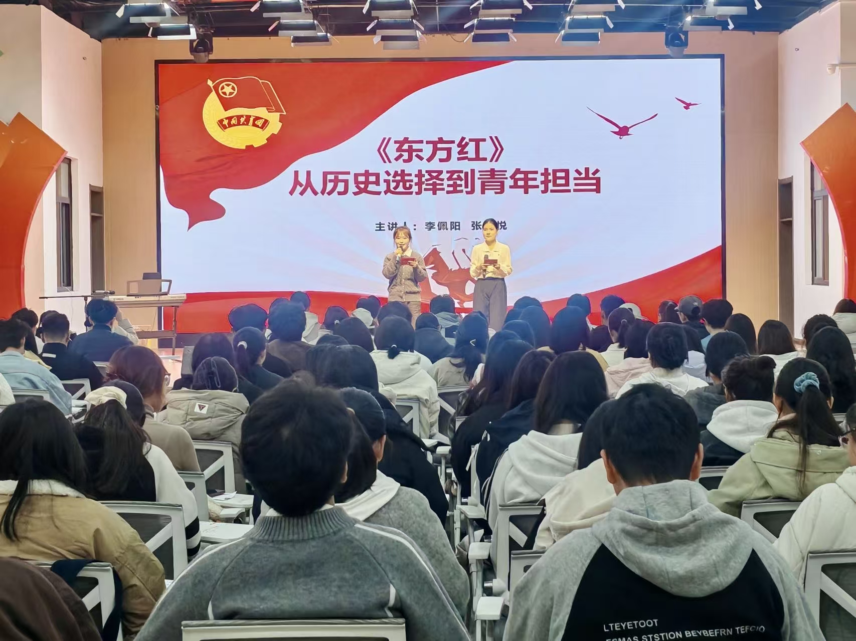 为深入贯彻落实习近平总书记关于加强新时代团员队伍先进性建设的重要指示精神,扎实推进入团积极分子思想政治引领,筑牢团前教育思想根基,11月8日—9日,校团委于学苑餐厅三楼青益空间开展“歌声里的时代回响”主题音乐团课,2025年下半年各基层团委推荐的入团积极分子参与此次主题音乐团课,马克思主义学院和音乐舞蹈学院的优秀学生骨干担任课程主讲人。 本次团课以“不同时代背景下的青年担当”为主线,精选不同历史时期的经典旋律,分四大篇章,引导入团积极分子在歌声中汲取奋进力量,深刻感悟一代代青年在时代洪流中勇立潮头的使命传承。 在“烽火岁月救亡图存”篇章中,主讲人深度解读《黄河大合唱》的创作历程与时代内涵,现场演绎的合唱、轮唱等多元形式,生动还原了“保卫家乡、保卫黄河、保卫华北、保卫全中国”的激昂呐喊。“风华正茂奠基立业”篇章循着陕北民歌《骑白马》的田间传唱足迹,追溯《东方红》从民间小调走向时代赞歌的演变历程,通过史料梳理与情感解读,将穷苦劳动人民对党的衷心拥护、对新中国的无限热爱娓娓道来。“春潮澎湃富民兴邦”篇章聚焦1977年恢复高考这一历史性节点,以《年轻的朋友来相会》轻快旋律为纽带,带领学员重温改革开放初期的青春脉动与时代机遇。“复兴征程挺膺担当”篇章则以三首风格迥异的现代歌曲为引子,通过情绪解读、舞蹈互动与思辨问答,层层递进引导学员将个人理想融入国家发展大局。团课在全体学员齐声高唱《光荣啊,中国共青团》的激昂旋律中落下帷幕,嘹亮歌声彰显着新时代青年有理想、敢担当、能吃苦、肯奋斗的青春风采,更坚定了大家志愿加入中国共青团的信念与决心。 此次主题音乐团课将理论教育、历史教育与艺术熏陶深度融合,打破了传统团前教育的刻板模式,让思政教育变得可听、可感、可悟,既完成了青年学生入团前的思想淬炼,又实现了美育素养的提升。下一步,校团委将持续丰富团前教育内容体系,创新活动载体形式,不断筑牢青年信仰之基、补足精神之钙、把稳思想之舵,引导广大团员青年自觉肩负新时代使命,在强国建设、民族复兴的新征程中书写无愧于时代的青春答卷。 (校团委 邓雪阳 薛晓琦 责任编辑 亢美珠) |