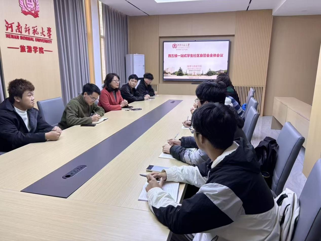 为深入推进“一站式”学生社区综合建设,充分发挥学生自主管理组织在社区建设中的桥梁纽带作用,进一步强化自管会队伍建设,11月5日中午,西五楼一站式学生社区自管会全体会议在地理与旅游学院综合科研室召开,学院相关负责人、自管会全体成员参加会议。
