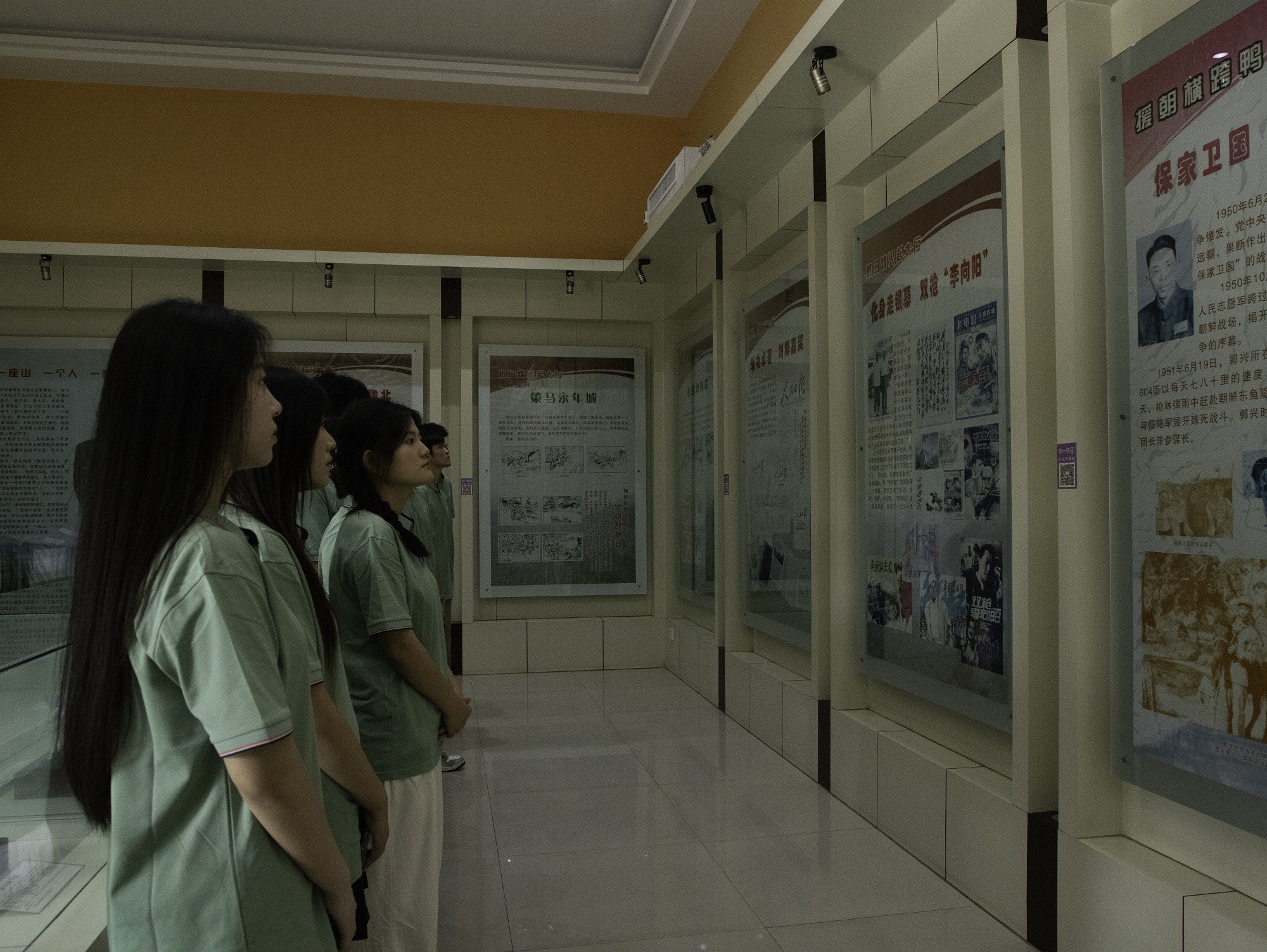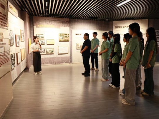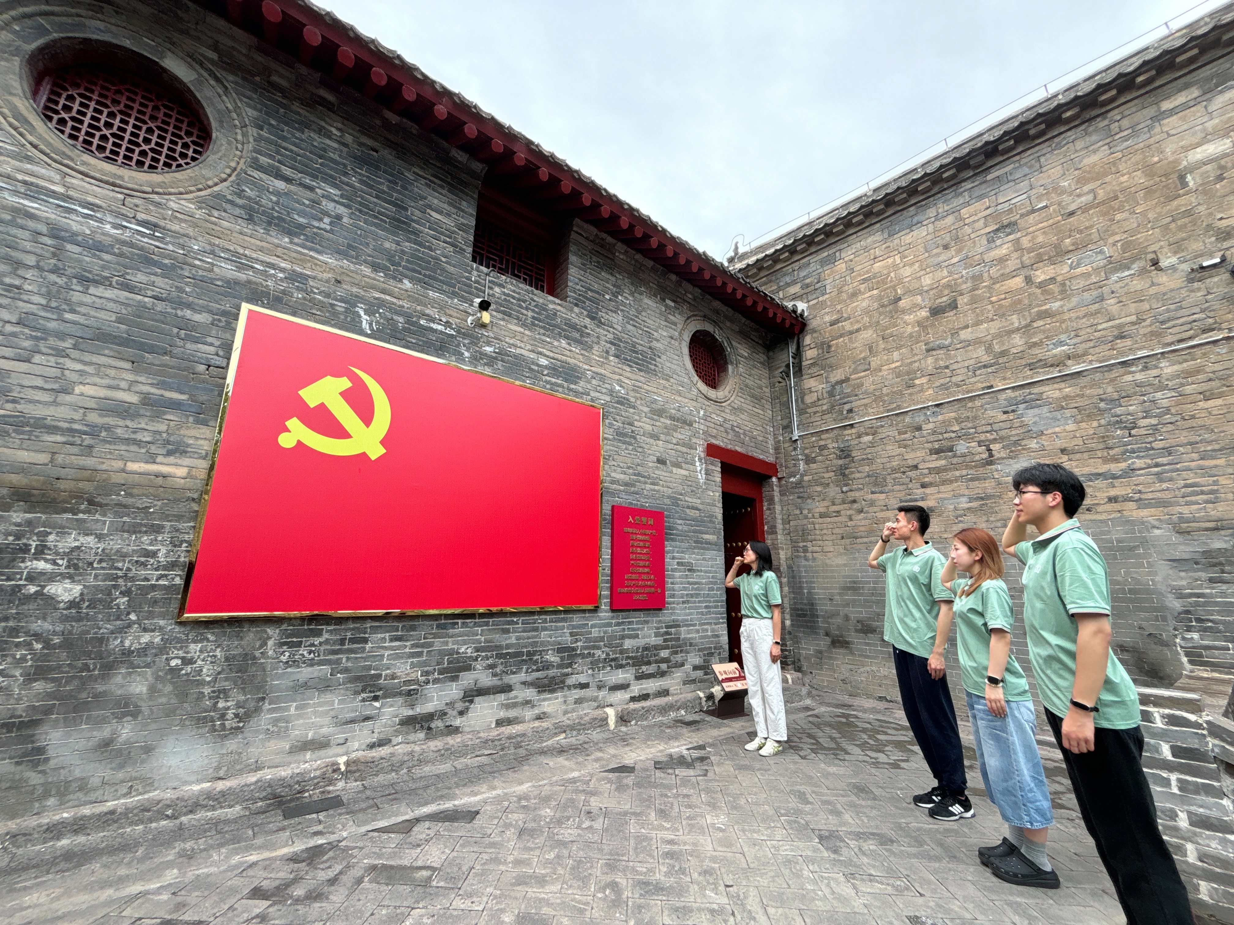 “八年抗战,是中华民族用血肉筑起的精神长城。”随着讲解员饱含深情的话语在耳畔响起,团队成员怀着虔诚与敬仰走进太行八路军抗战展览馆。肃穆的展厅里,时光仿佛在此凝固——泛黄照片上年轻战士坚毅的目光穿越八十载光阴直抵心灵,军用水壶上每一道斑驳的划痕都在无声诉说着那段血与火的岁月,作战地图上密密麻麻的标记清晰勾勒出先辈们浴血奋战的轨迹,历经战火的老党旗镌刻着共产党人的赤诚。望着那些记录了抗战记忆的文物,团队成员陈盈颖感慨道:“站在这里,我仿佛能触摸到那个年代的脉搏。先辈们用鲜血和生命诠释了什么叫做民族气节和家国情怀,这种伟大的精神力量永远值得我们铭记和传承。”