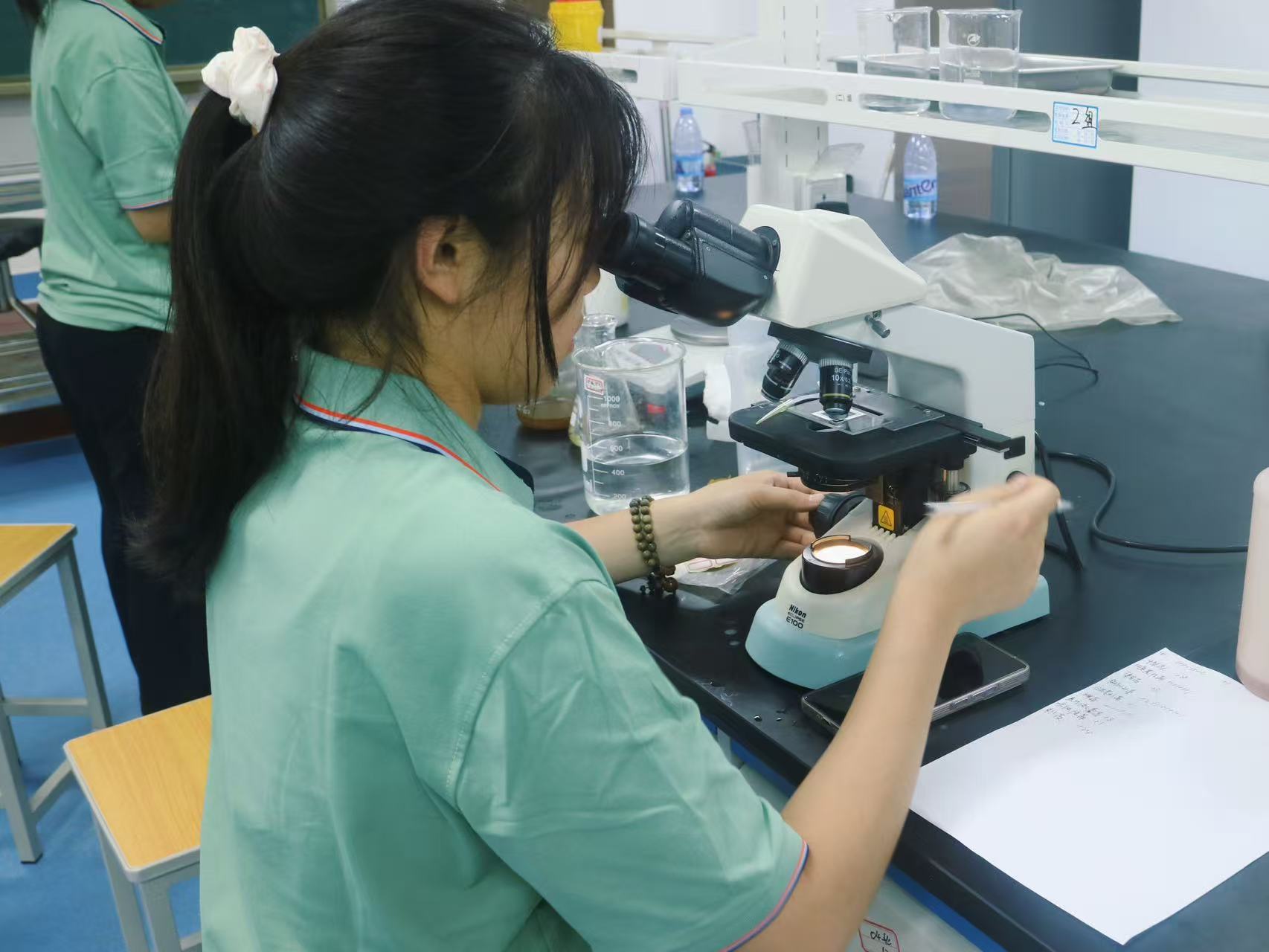 紧接着,郭佳欣带领同学们进行了粗盐提纯实验。实验开始前,她再次强调了实验室安全规则,确保每位学生都做好充分的准备,并对每一步都进行细致演示。同学们跟着她的演示步骤进行实验,现场井然有序。