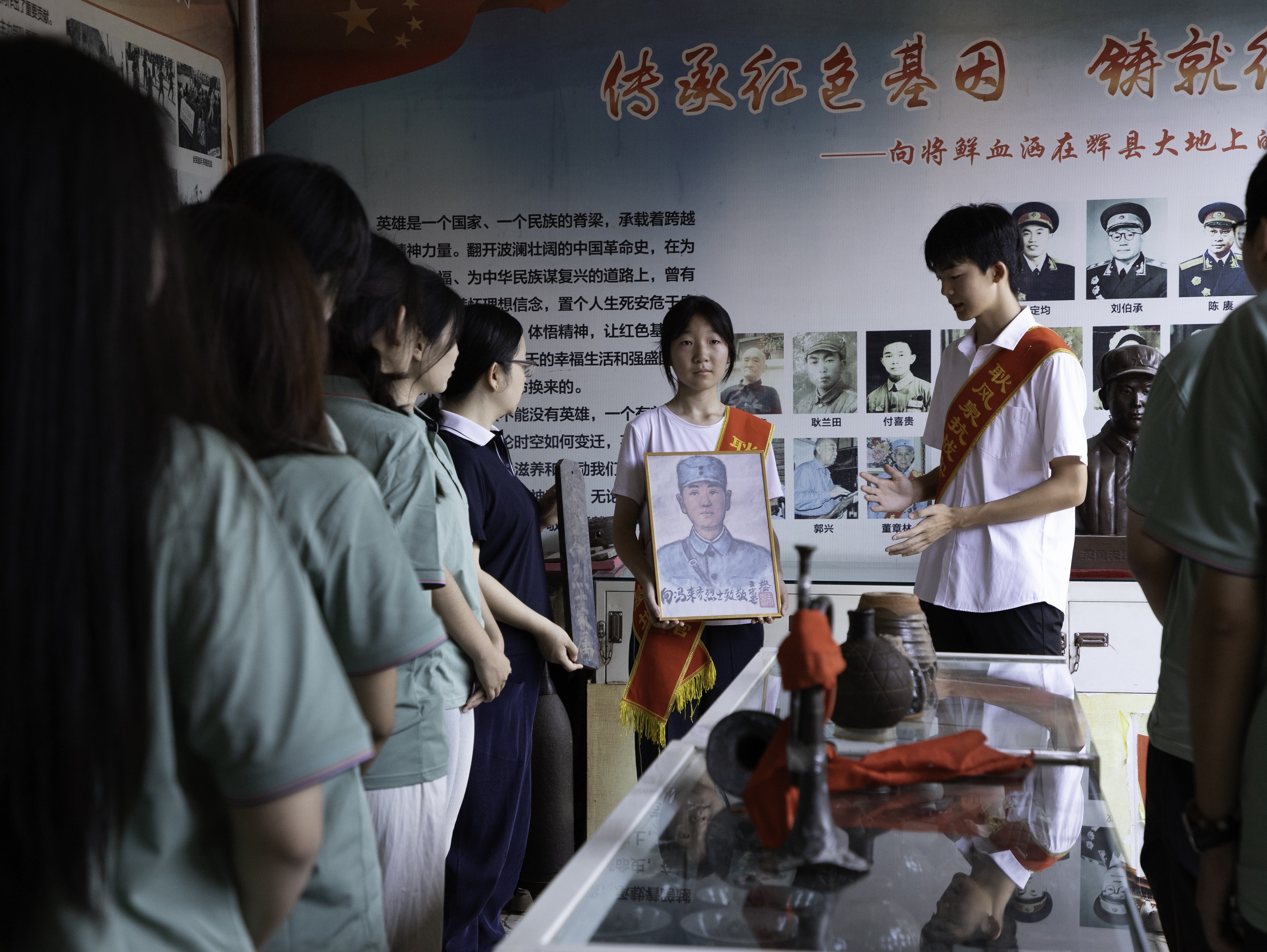 七月的骄阳炙烤着青石板路,却让队员们胸前的校徽更加闪亮。纪念馆负责人带领团队成员走过一个个展柜,深情讲述历史文物背后及其联合县军民共同抗战的动人故事。当讲到三个抗战老兵与敌人英勇作战的英雄事迹时,老人不由感慨:“我们现在的好日子都是老一辈抗日英雄舍生忘死、艰苦奋斗换来的。你们是祖国的花朵,生在红旗下,长在春风里,你们一定要铭记老一辈英雄的精神,把我们新中国建设得越来越好啊!”