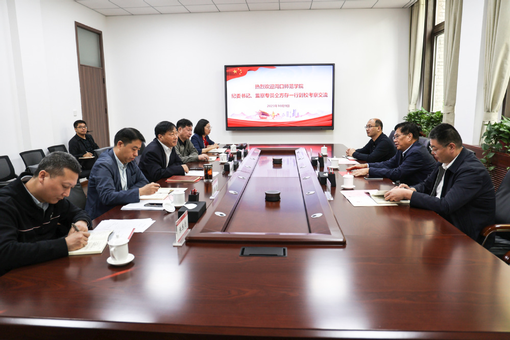 10月9日上午,周口师范学院纪委书记、监察专员仝方存一行3人到我校考察交流。校党委常委、纪委书记、监察专员王玉良会见客人并主持座谈。