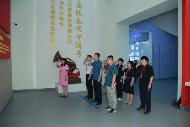 6月20日,学校党委第一巡察组党支部赴新乡市红旗区廉政文化教育馆开展主题党日活动,组长、党支部书记王鹏祥和巡察软件学院分组全体成员参加。全体成员依次参观了“廉史流韵、廉洁之路、警钟长鸣、红旗高扬”等4个展厅,深切感受以习近平同志为核心的党中央全面从严治党和拒腐防变的决心。大家纷纷表示将坚定为党的事业奋斗终生的信心和决心,真正让纪律和规矩内化于心、外化于行,以更加饱满的热情为学校高质量发展续写奋进之笔。最后,大家面对党旗庄严宣誓,重温入党誓词。