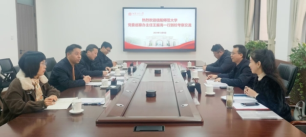 12月5日上午,信阳师范大学党委巡察办主任王振海一行3人到我校考察交流。调研交流会在勤政楼第一会议室召开。校纪委副书记、党委巡察办主任侯帅主持座谈会。