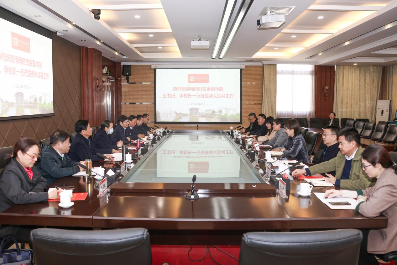3月20日下午,河南财政金融学院党委书记王雪云、校长李学志一行莅临我校考察交流。校长冯淑霞出席座谈会并...